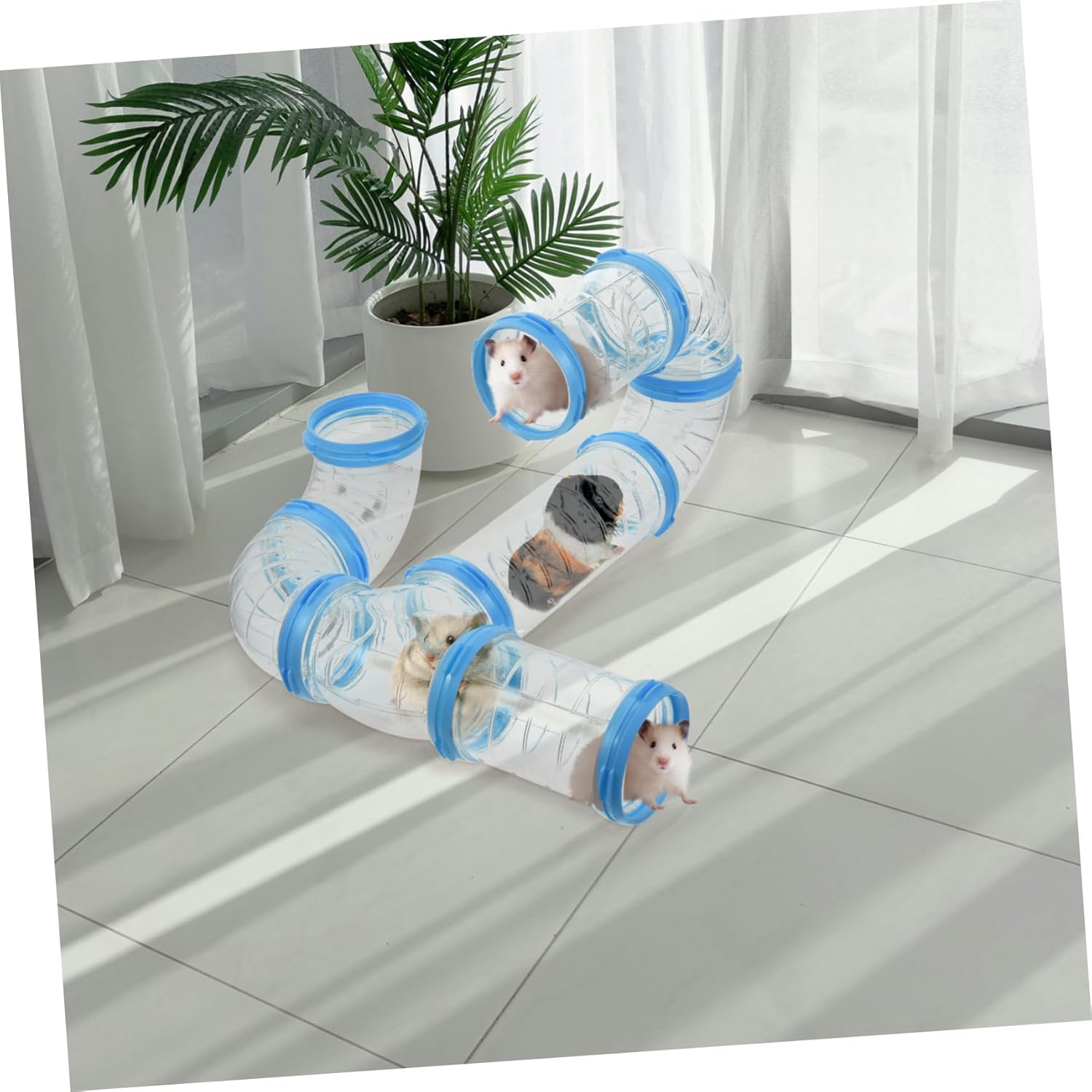 Package List 2 x Sets of Tubes Characteristics -Color:Assorted Color hamster tube kit -Material:PP hamster tube transparent -Product Info:Hamster Tunnel -Note:In line with 5.5CM/2.16in diameter can be connected tubes hamster -Size:24.00X5.50X5.50cm/9.43X2.16X2.16in hamster tubes clear -You can install them on the pet cage to increase the way of hamster activities tube for hamster. -Provide area for your pets to explore and to promote their habits hamster tunnels. - to DIY hamster tube and create an interesting playground for your pet tubes . -Made of good and safe plastic materials, it is very practical and durable. It can connect to do more modeling, expand your habitat and provide more . -Easy to clean, also, can be used to connect various to create more tunnels. Perfect for small pets such as hamsters, squirrels, hedgehogs, guinea pigs to keep their running nature transparent hamster tubes.Goods Informationadd on tunnels for hamsters This hamster cage made from plastic which durable and strong.rat accessory cage And suitable for hamsters, squirrels, hedgehogs, Guinea pigs and other small pets.clear hamster tubes Its different shape design which you can use it indoor or outdoor the cage