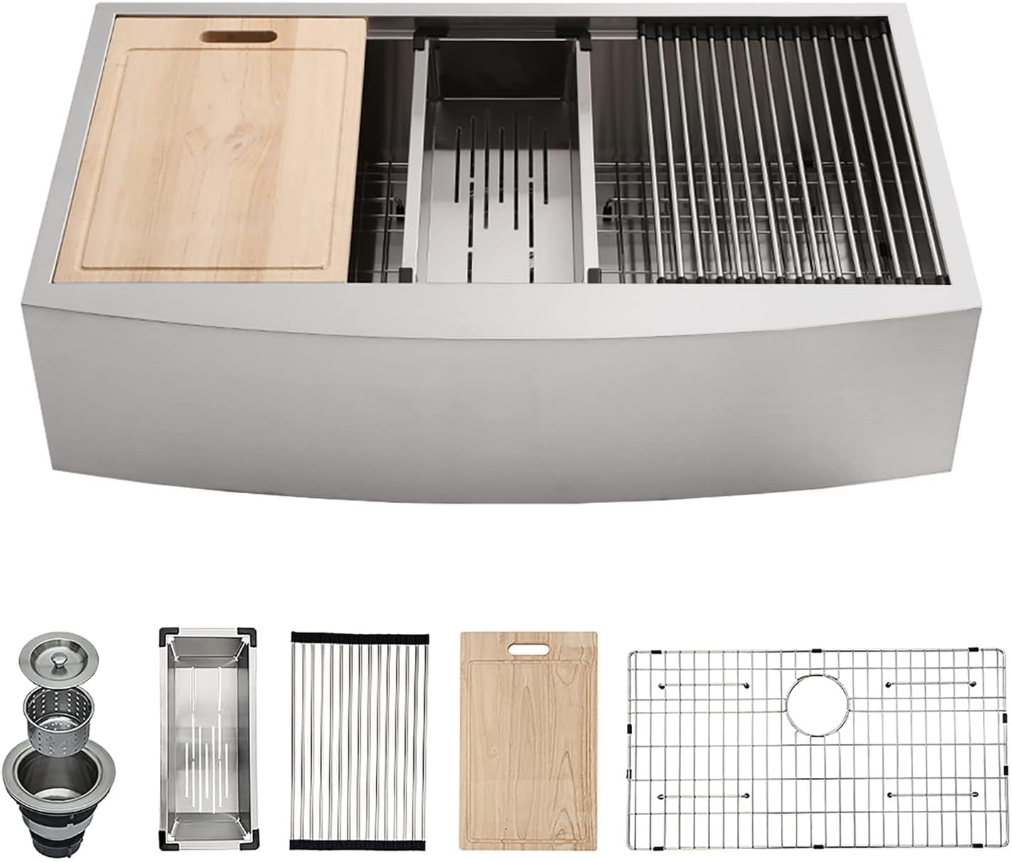 | Included Components | Bottom grid, Cutting board, Drain strainer assembly, Roll up drying rack, Stainless colander |