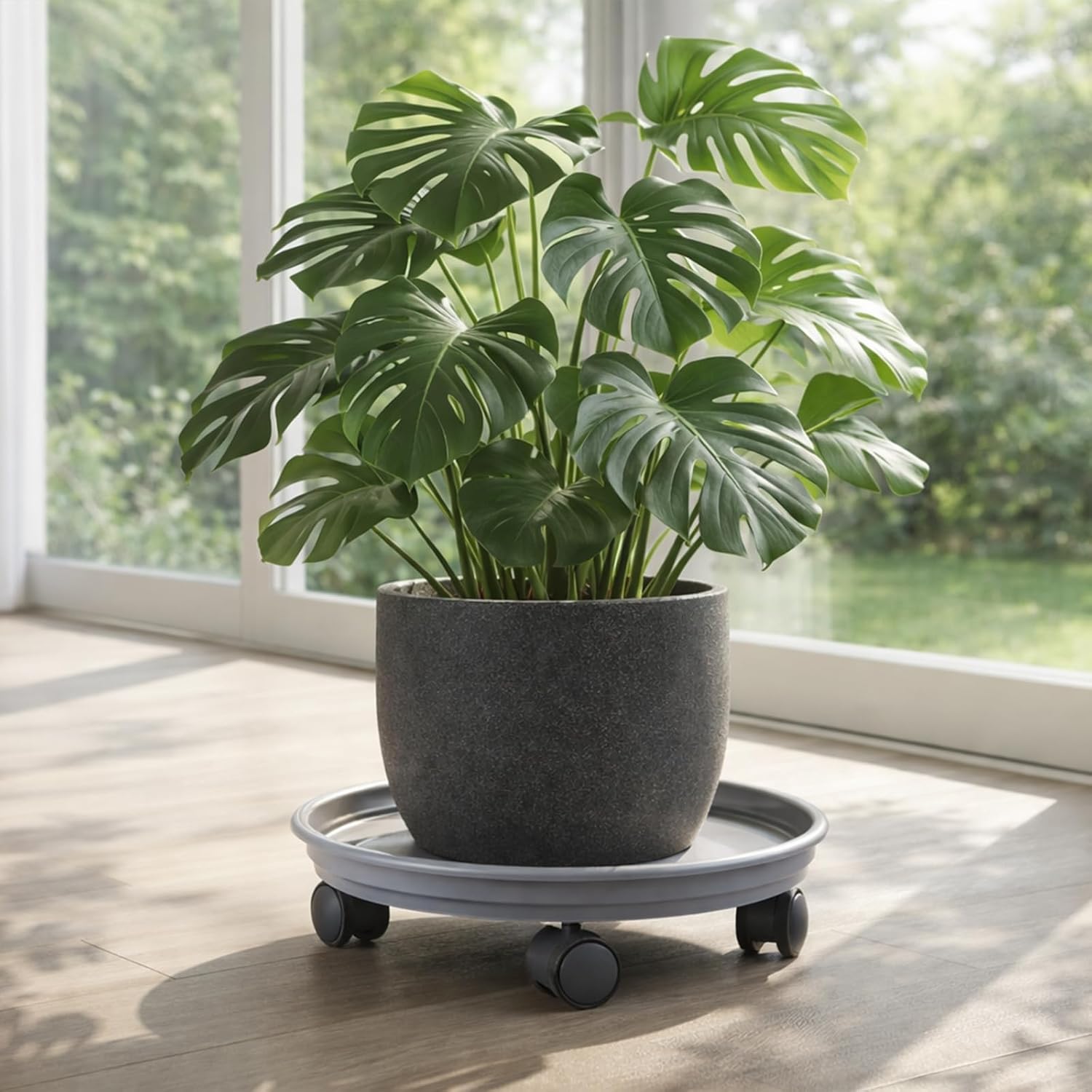 5 Packs 12 Inches Plastic Plant Caddy with Wheels Rolling Plant Stands with Casters Plant Roller Base for Moving Heavy Plant Pots Indoor Plant Mover Saucers, Grey