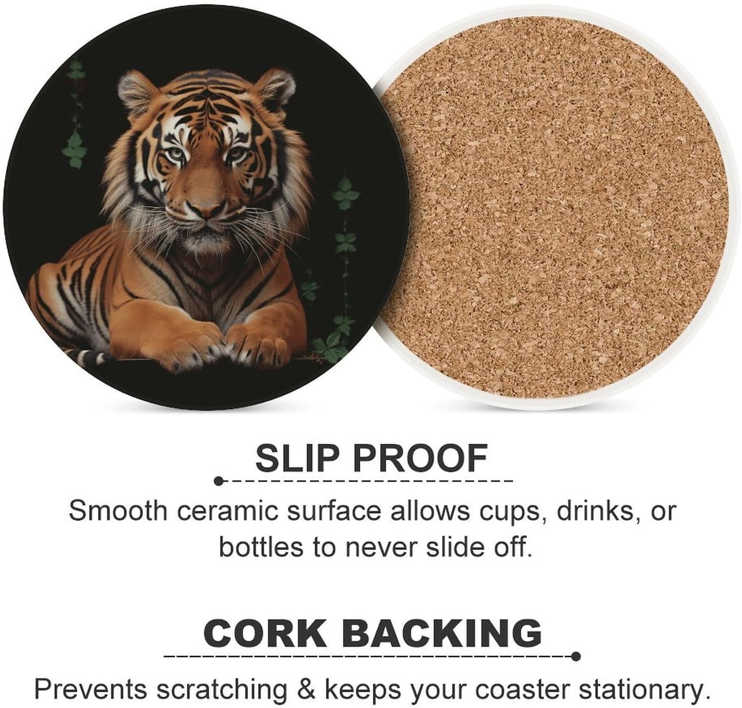 Transform your daily hydration into a stylish and protective ritual with our Cute Ceramic Coasters with Cork BottomDrink Coasters for Home Cup Mats for Table Rustic Coasters Round Coasters Unique Coasters Vintage Coasters Art Teacher Gifts Round Drink Coasters for Hot Cups Funny Coasters Outdoor Coasters for Patio Table Waterproof Bar Coasters Non-Slip Table Coasters Absorbent Coasters Ceramic Car Coasters for Cup Holders Ceramic Cup Holder Coaster for Car Cool Coasters Pretty Coasters White Wine Coasters Housewarming Gifts CoastersSuitable Size:Heat resistant coasters for drinks arr crafted from ceramic and finished with a natural cork base, each coaster is as practical as it is sustainable. The 4.1-inch round size is perfectly proportioned to sit under a variety of glassware - from your favorite coffee mug and ceramic teacup to tall glasses of iced tea or bottles of beer.Double Protection:The heat-resistant ceramic top acts as a shield, guarding your cherished wood tables, kitchen countertops, and office desks against hot beverages, unsightly water rings, and condensation . Meanwhile, the soft, non-slip cork bottom plays a dual role: it prevents the tea coasters from sliding around when you reach for your drink, and it ensures your furniture remains free from scratches and scuffs.Multi Purpose: Whether you're decorating a coffee table in the living room, adding a functional touch to a home office, or setting up a bar cart for entertaining, these decorative coasters are the perfect blend of utility and subtle style.Material: Ceramic & CorkSize: 4.1 inches (Diameter)Care: Wipe clean with a damp cloth.Designed for the modern home, these heat resistant cup mats blend functionality with minimalist aesthetics to keep your surfaces pristine.