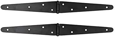 Daberath" Black Antique Iron Double Strap Hinge - Black Powder Coated (12", Black Powder Coated)