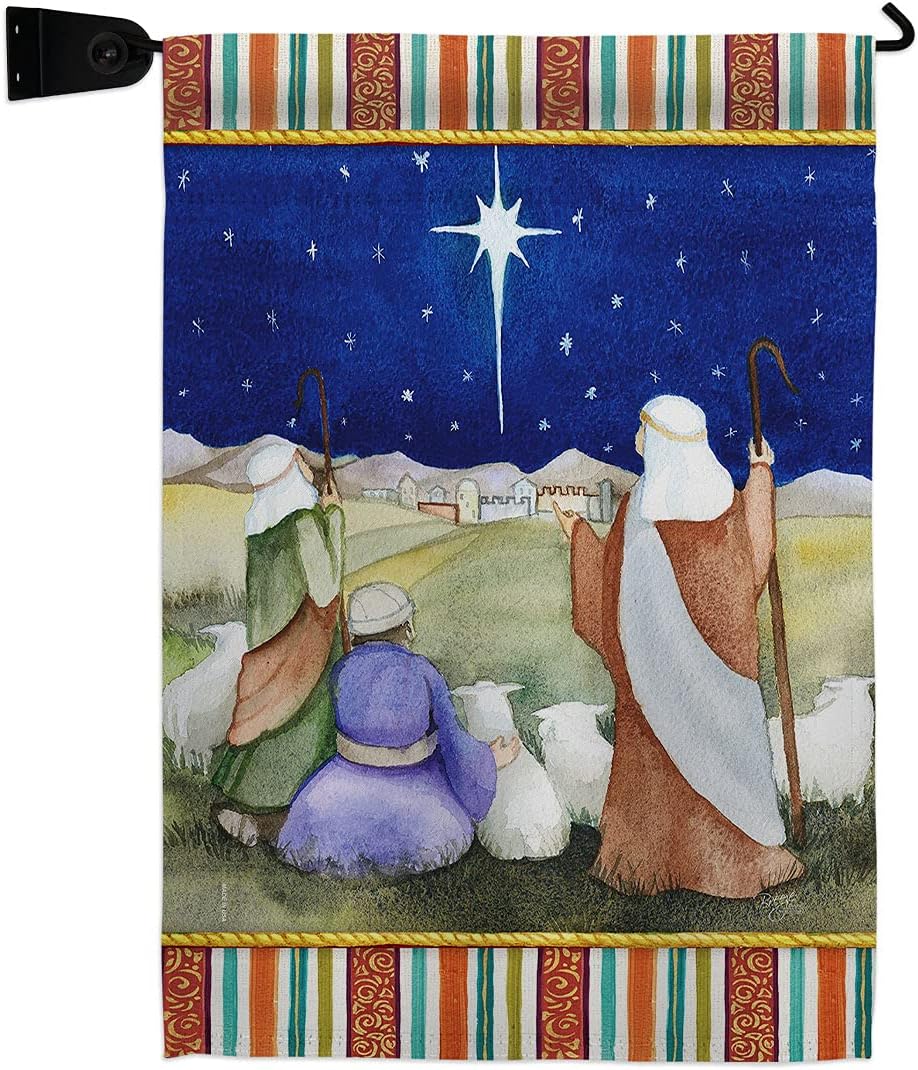 Nativity Beautiful Mini Garden Flag with Metal Garden Banner Pole Stand - Complete Set with Wall Hanger - 3.75" x 14.5" Power Coated Metal Flag HolderBreeze Decor have variety of Garden Flag Set for all occasions. Uniquely design for hanging indoor or outdoor use. We are committed to offering you exceptional values. Our customers enjoy displaying our Garden Flag Set for longer periods. Specification: Theme: Nativity Size: Garden Flag Set 13" x 18.5" Size: Metal Wall Hanger Print: Double-Sided Readable: Readable Single Side Material: Weather Resistant Polyester 300 D Stitching: Double Stitched Display: Vertical Hang Type: Sleeve Artist: Kathleen parr McKenna Special Features: Origin: Made In USAPackage Include: 1 pc x Mini Garden Flag 13" x 18.5" 1 pc x Metal Yard Banner HardwareFor more than a decade, we’ve been dedicated to manufacturing flags with no comparison in quality and beautiful designs. Our flags are made with our Pro Guard material that is soft to the touch and designs can be read correctly on the flag. A feature that our customers will love. We are committed to using eco-friendly inks that won’t leave a foot print in our environment. MPN: BD-NT-GS-114215-IP-P3-02-S-US18-WA 14215 64215