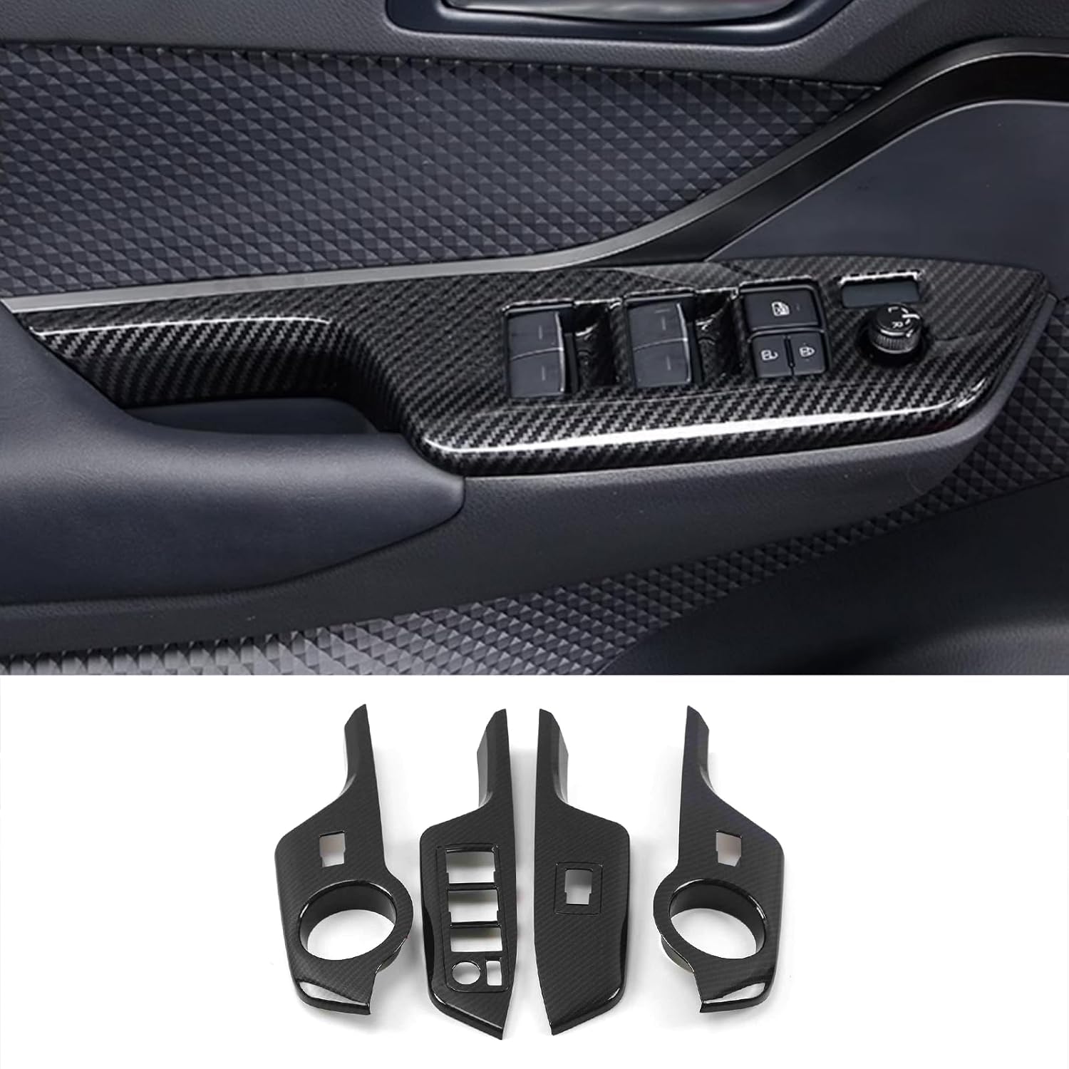 Basic Product Information: Fit For Toyota C-HR CHR 2018 2019 2020 2021 2022 2023 With rearview mirror adjustment switch . TIP: Please check whether your car model is consistent with the product before buying the product to prevent buying the wrong product. After receiving the product, make sure to determine where the product will be installed, and then compare the product and the installation location. installation method: (1) Use self-adhesive on the back of the item. (2) Clean the surface to be pasted. Keep dry and clean. (3) Please press hard at least 2 minutes after installation, especially the edges. (4)If the weather is cold. Please use a hair dryer (hot air) for the best connection. (5) Do not touch water and keep dry for at least 72 hours after installation. Otherwise it will fall off easily. ★Material Type and Product Features: Made of High Quality ABS plastics . Colors:Carbon Fiber Style、Peach Wood 、Blue 、 Matte Silver . Special tape of the car is attached at the back.It could dramatically upgrade and improve the Inerior, makes your car much more luxurious, and provides superior protecting effect. Package includes: include 4 pieces per set. TIP: Please check whether your car model is consistent with the product before buying the product to prevent buying the wrong product. After-sales and service: If the product is not suitable or unsatisfactory, please do not install it and contact us.