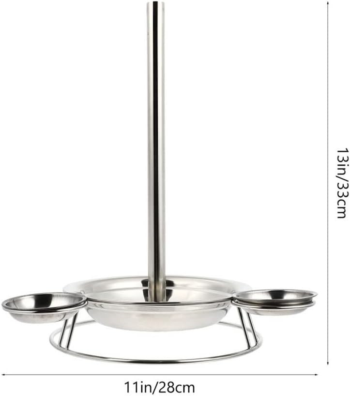 The chicken roasting rack is made of stainless steel, it has superior strength and durability. The chicken roaster stand roasts poultry standing up to allow fats to drip off, the drip pan under the chicken rack could be held the fats.FeaturesColor: Assorted colorMaterial: Stainless steelSize: About 33.00X28.00X28.00cm/12.97X11.00X11.00inchDetachable steel pipe and chassis, easy to place.Thick solid line, weld firmly, which is more practical.Seasoning dish is attached on both sides, which can be used for dipping.Stable placement, prevent the rack form dumping.Bright and easy to clean.Note:Due to the different monitor and light effect, the actual color of the item might be slightly different from the color showed on the pictures. Thank you!Please allow 1-2cm measuring deviation due to manual measurement.Quantity : 1 PCSBuilt to Last - Heavy duty stainless steel smoker accessories designed for serious barbecue. With a serrated-edge spatula, lockable tongs, fork, and silicone basting brush, this durable bbq tools set is built to handle burgers, brisket, and more year after year