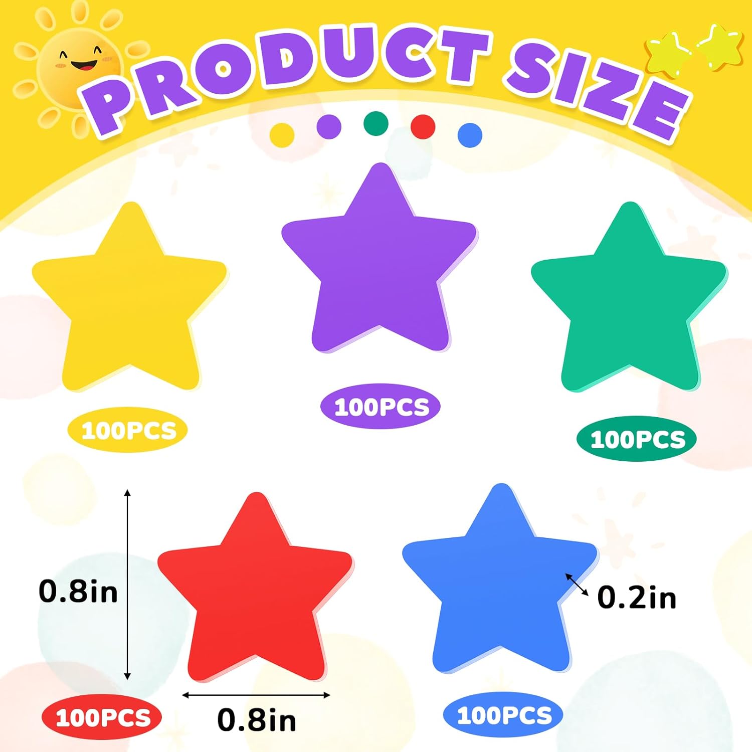 Features: These mini star erasers are abundant in quantity, bright and equally distributed, 100 for each color, 500 for 5 colors in total. You can also use eraser as teaching props to let users learn star shape and colors, and learn to count and develop logical thinking ability. It is a good prop to activate the atmosphere and increase interest in learning. The erasers can help keep their books and notes clean and tidy, they are also applicable in work settings. The various colors add a fun of color to any space, making them an excellent addition to any workspace or study area. Specifications: Material: TPR Color: red, green, blue, purple, yellow Size: about 0.79 x 0.79 x 0.24 inches/ 2 x 2 x 0.6 cm Package includes: 500 x Star eraser Notes: Due to the small size of the product, little one should use our product under adult supervision to prevent choking risk. Manual measurement, please allow slight errors on size. The color may exist a slight difference due to different screen displays.
