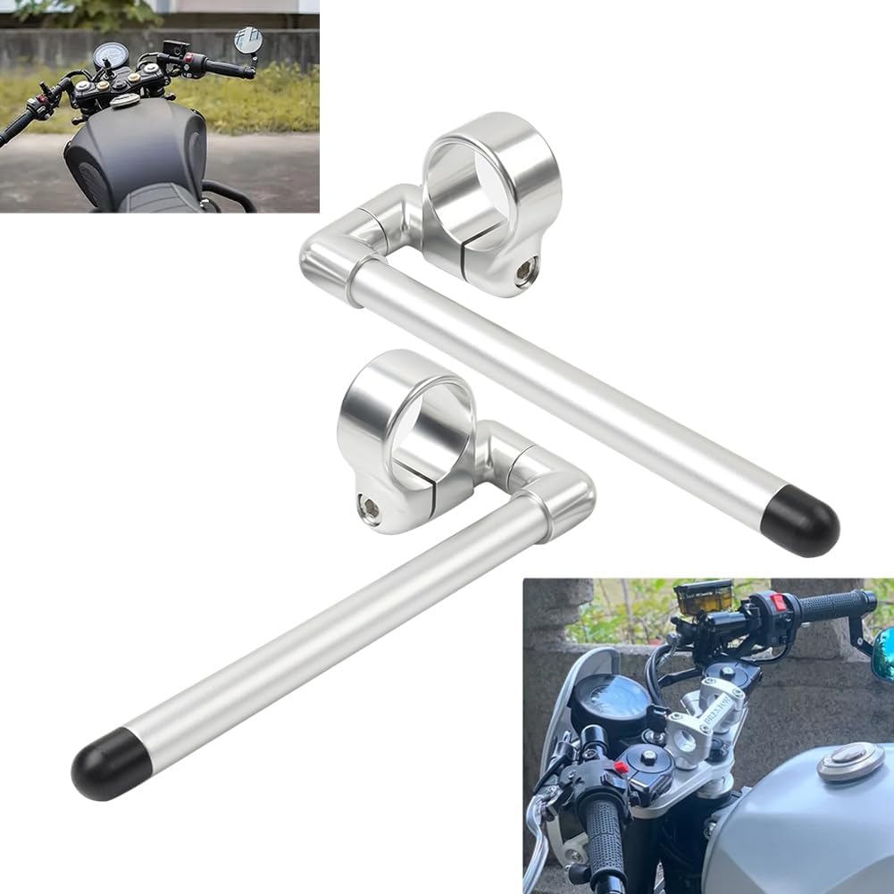Cnthan7 Cafe Racer Bars Handlebar Fork Tube Silver 51mm Aluminum Universal for motorcycles with 31mm-58mm fork tube 1 Pair
