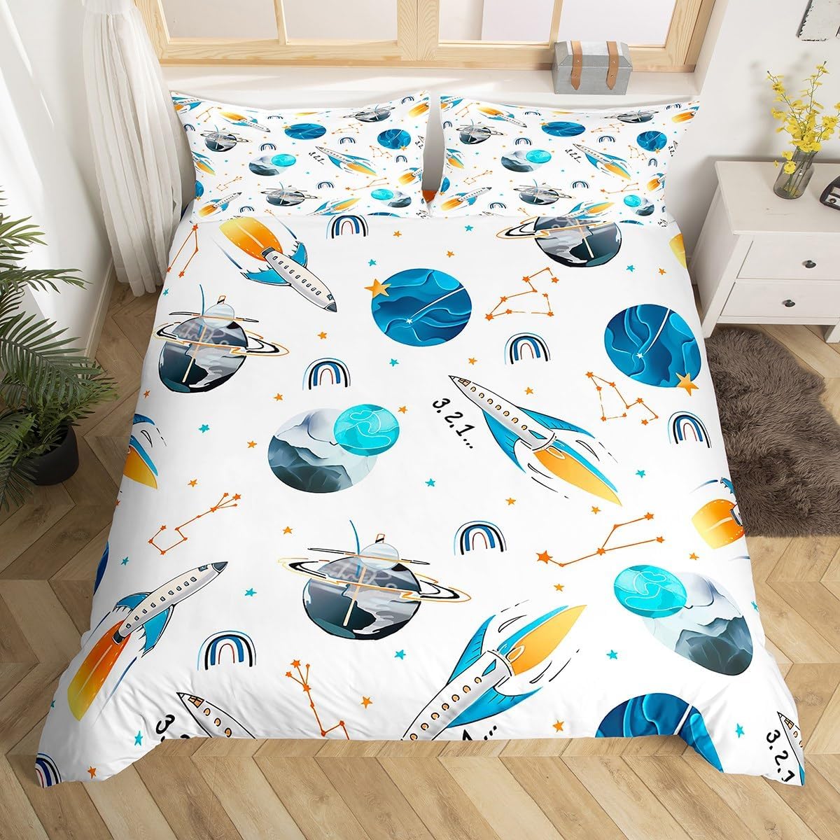 Package Include: Duvet Cover, Pillowcase; High Quality Duvet Cover Set Pattern Bedding Set, simply decorating your rooms any time you want, bringing you fresh feel for year round use. Polyester: Made from polyester microfiber, the sheet set offers strength, natural resistance to shrinking and a noticeably soft hand feel. Size Information: Toddler size 2pcs:1 x Duvet Cover 42" x 58", 1 x pillowcase 20" x 30".Without Comforter. Twin size 2pcs: 1 x Duvet Cover 68" x 90", 1 x pillowcase 20" x 30".Without Comforter. Full size 3pcs: 1 x Duvet Cover 80" x 90", 2 x pillowcase 20" x 30".Without Comforter. Queen size 3pcs: 1 x Duvet Cover 90" x 90",2 x pillowcase 20" x 30".Without Comforter. King size 3pcs: 1 x Duvet Cover 104" x 90", 2 x pillowcase 20" x 36".Without Comforter. Personalize your bedroom: Beautiful design and colorful print, makes your bedroom unique and brings you a wonderful dream. Washing instructions: Machine wash separately in cold water,hang dry, do not bleach. Occasion: The cute soft duvet cover bedding sets designed for Children ,Adult, Men, Women, Teens. This duvet cover set is also suitable for full seasons, Spring, Summer, Autumn and Winter.