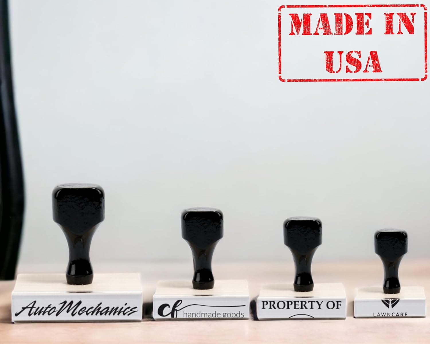 • Select from a variety of sizes for your personalized rubber craft stamps.