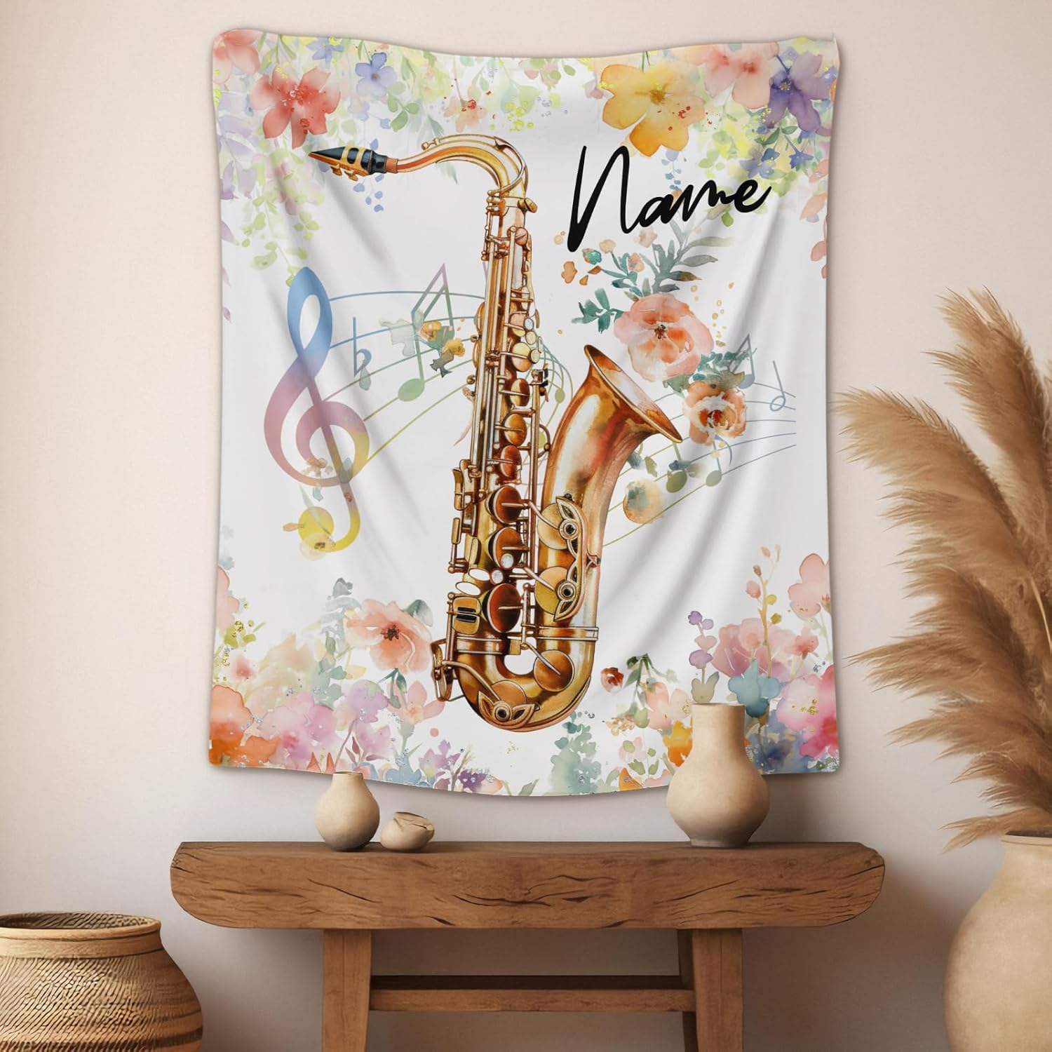 Special BlanketOur personalized flannel music blanket, a variety of four sizes for your choice: 40 "x 30" lap size for pets, 50 "x 40" crib size for kids girls boys, 60 "x 50" throw size for teens, adults, 80 "x 60" twin size for bed, living room. Cute GiftGive this blanket to someone you love, saxophone lovers, saxophone players, music enthusiast, children or family members can curl up in this fluffy blanket to read, watch TV, play games or spend quiet time. This is an excellent gift for music fans. Premium Flannel MaterialOur flannel plush music lovers throw blanket with bright color, touch and comfy softness and constant warmness.