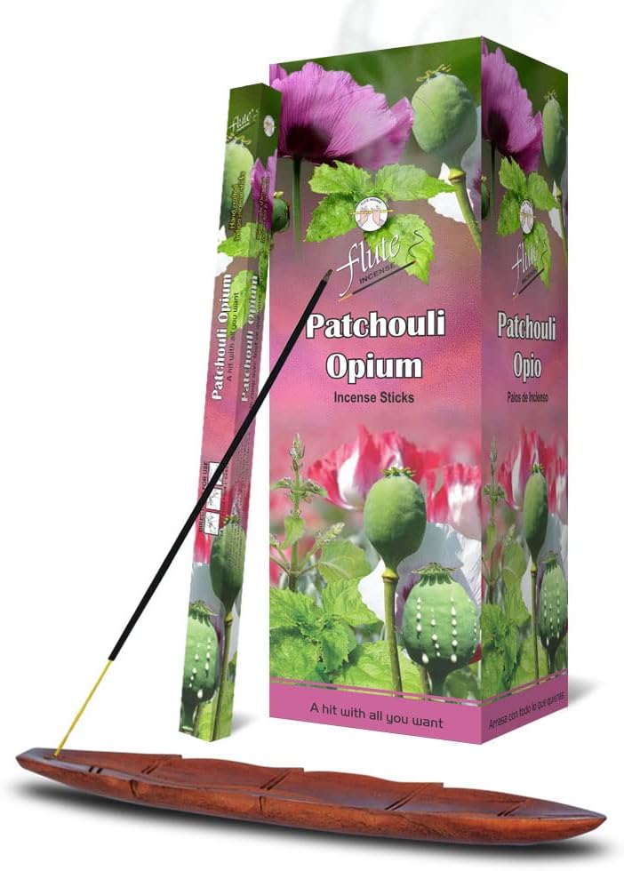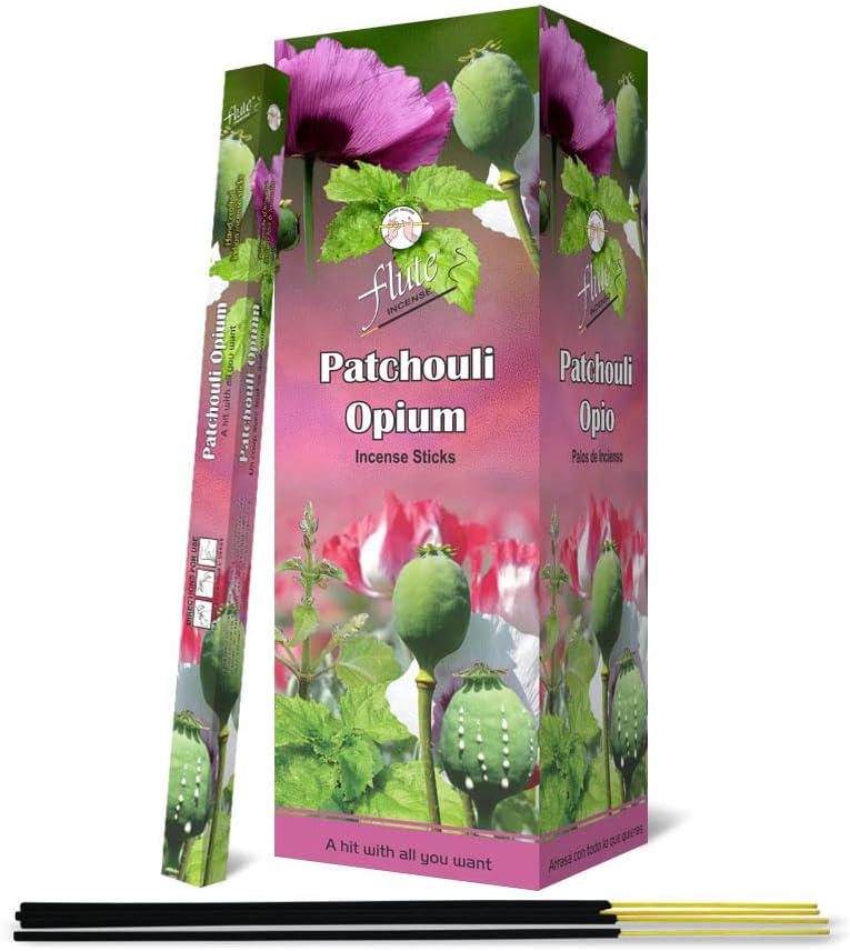 Flute Brand Patchouli Opium is a pack of 200 sticks. These fragrant incense sticks are infused with the herbal, earthy notes of Patchouli and Opium. They have a burning time of 40 minutes per stick.