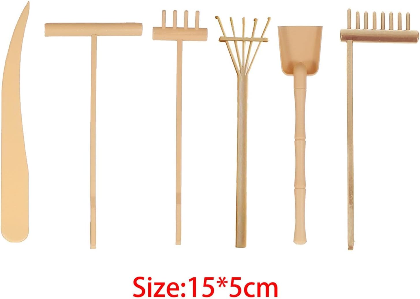 Description: - PP material, can be used for a long time. - Mini size design, light weight, easy to carry, smooth surface will not hurt your hands. - This set includes a variety of different styles of small rakes. You can choose what you need. - Use these mini rake toys to create a variety of patterns on the sand table. - Can be used as a gift for friends as a desktop ornament or mini landscape decoration. Specifications: - Color: Black Yellow - Material: PP Size Chart: 15cm*5cm/5.91"*5" Package Includes: 1 set garden sand mini tool Note: Please allow a little error due to manual measurement and monitor.