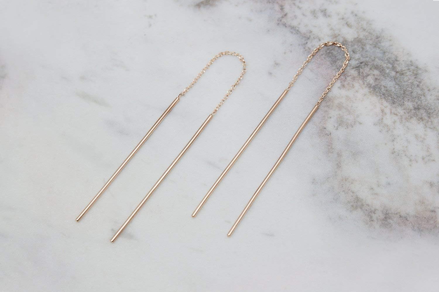 Two long thin bars create this elegant pair of gold threader earrings. Chic and classy! ---------- DESCRIPTION: Each gold bar is made of a round wire 3.5cm long (approx. 1.4in) and 0.9mm thick. (approx. 0.035in). The chain is 3.5cm (1.4in) long and 0.8mm (approx. 0.031in) thick. The earring's whole length, front and back together is 10.5cm (4.13in).