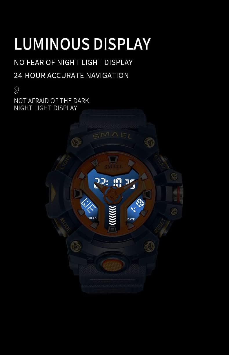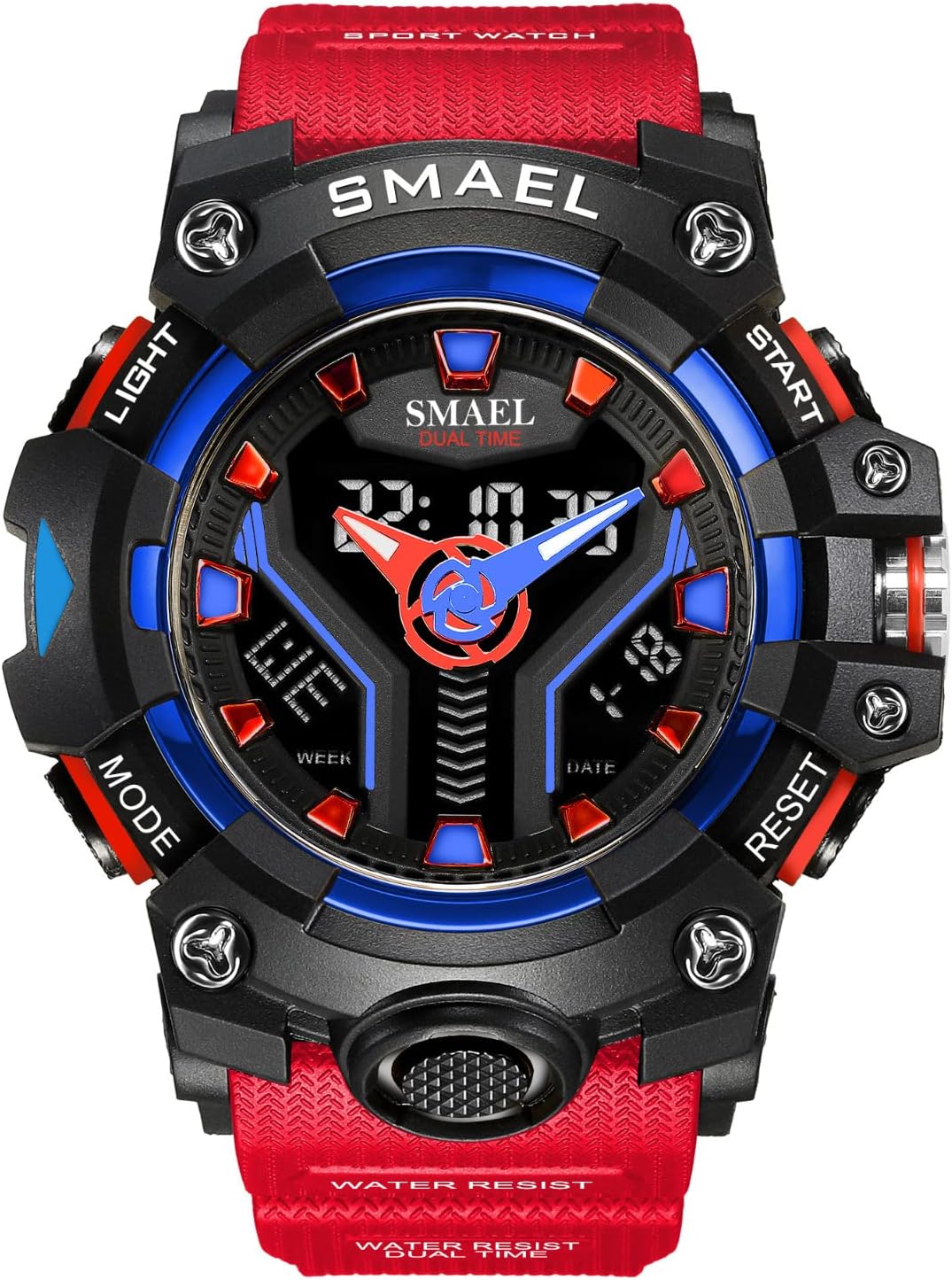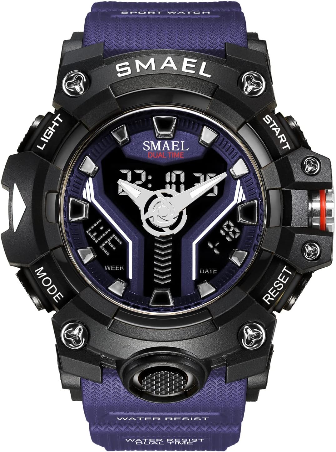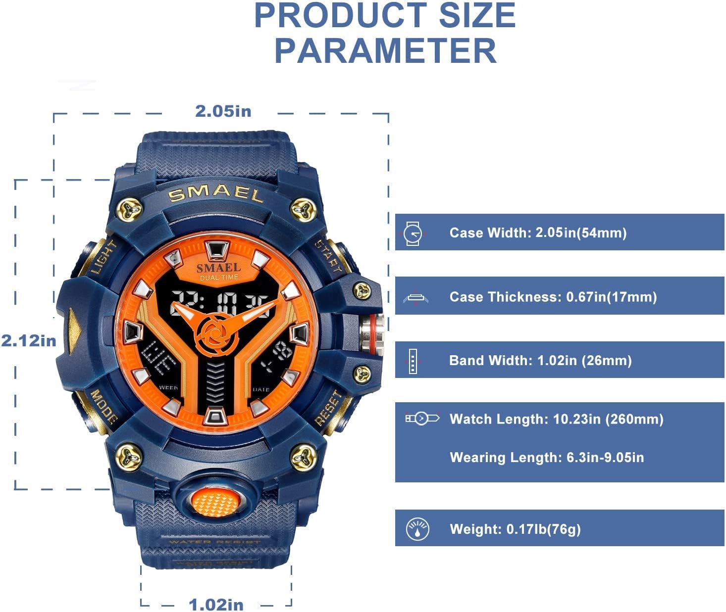 Specifications Band Length: 240mm Band Width: 24mm Dial Diameter: 53mm Case Thickness: 18mm Water Resistance Depth: 50M Weight:72G Movement:Quartz Display: Dual Display Case shape:Round Applicable population: Men Style: Casual and Sport Material Band: TPU Case: Plastic Dial Window: Organic Glass Clasp Type: Buckle