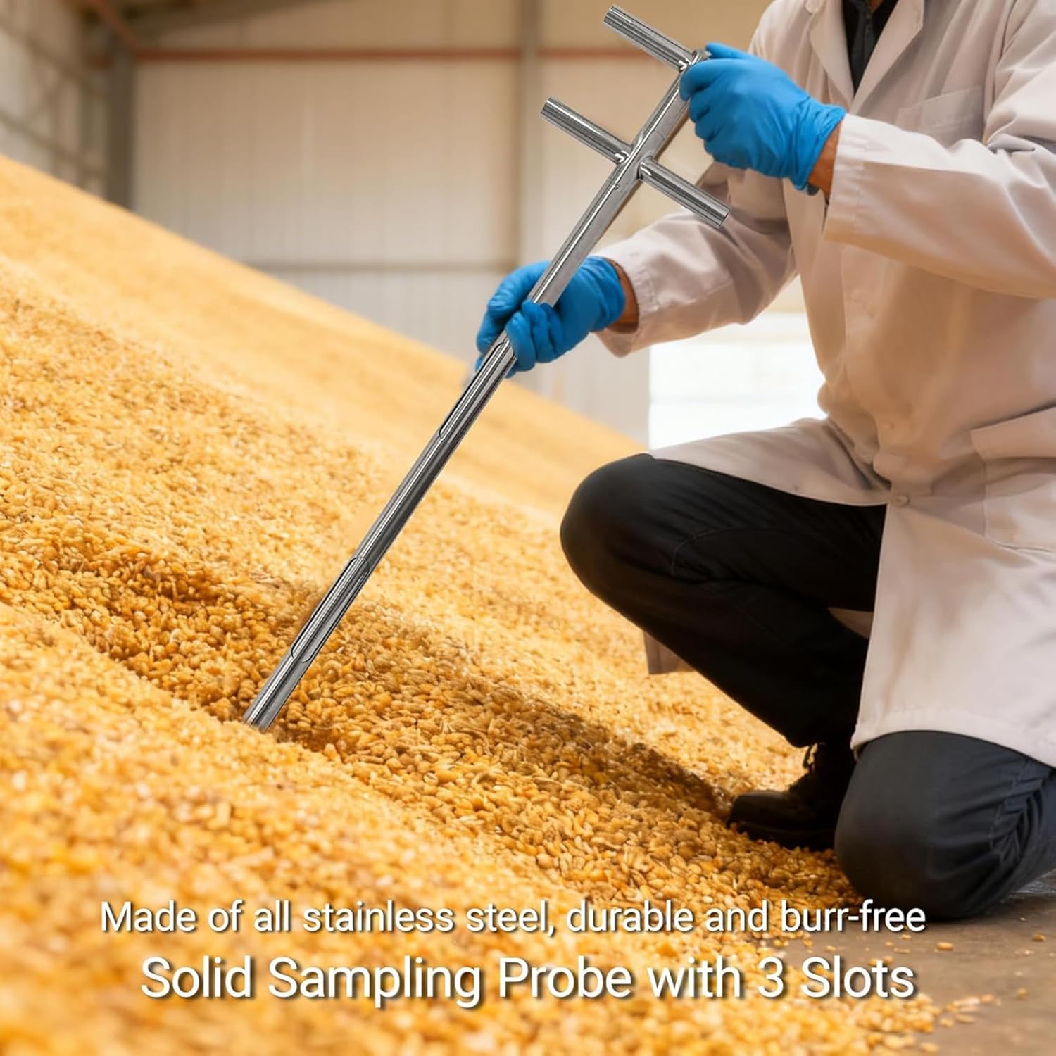 Introducing Stainless Steel Grain Sampler Kits, designed for professionals and enthusiasts in the agricultural and food industries. Crafted from premium stainless steel, these durable samplers resist corrosion, ensuring reliability in various environments. These kits accommodate diverse sampling needs and are equipped with three efficient sampling slots. Ideal for collecting grains such as rice, flour, rapeseed, corn, wheat, peanuts, and soybeans. Weighing approximately 2.5kg, they offer a balance between ease of handling and robust performance, suitable for both field and laboratory use. These samplers enable accurate sample collection from grain storage or during harvest. Ideal for farmers assessing crop quality or researchers conducting studies, this kit provides a practical solution for obtaining reliable samples while preserving the integrity of your grains. Experience the convenience and efficiency of a tool designed with your needs in mind.