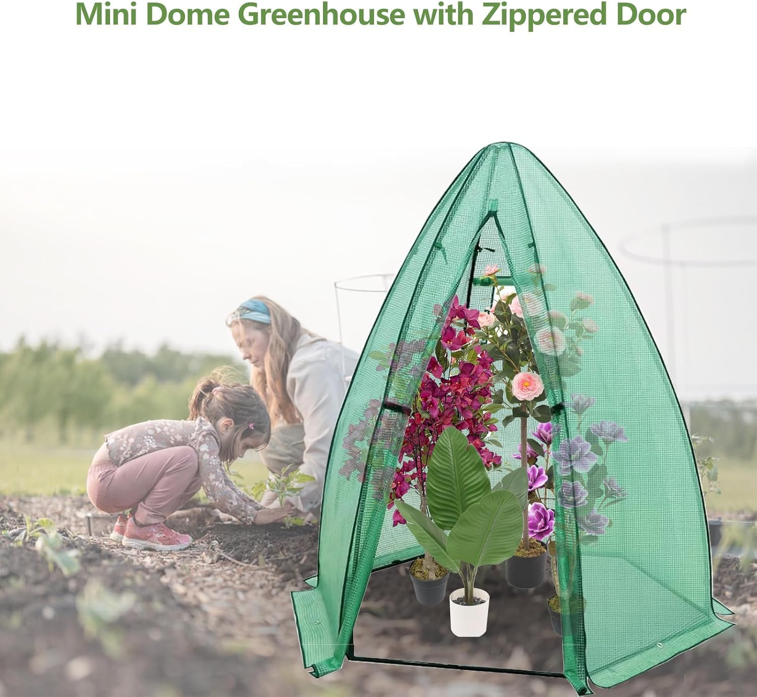 This heavy-duty outdoor greenhouse is designed for gardeners who need reliable protection and consistent growing conditions throughout the year. Equipped with a durable PE cover, this garden greenhouse helps lock in warmth, prevent UV damage, and shield plants from harsh weather. The sturdy steel frame ensures long-lasting stability, making it ideal for vegetables, flowers, fruits, herbs, seedlings, and young plants.The zippered roll-up door and mesh window enhance ventilation and allow you to control humidity and temperature, helping your plants thrive naturally. Its compact 54"x54"x71" size fits perfectly in small outdoor spaces such as patios, backyards, balconies, and porches while still providing generous room for pots and shelving.Whether you're looking for a plant shelter, raised bed cover, cold-frame alternative, frost protector, portable greenhouse, or mini walk-in greenhouse, this structure delivers efficiency and durability for beginner and experienced gardeners alike. Ideal for seed starting, overwintering, propagation, and extending your growing season.