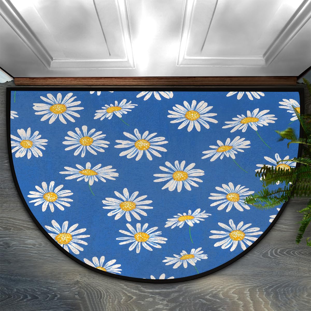 Half Round Door Mat Half Moon Rug Washable Half Circle Area Rug for Indoor Entrance Non Slip Semi Circle Bathroom Rug Floor Carpet for Kitchen Bedroom Fireplace DecorSize: 36 x 24 inchesMaterial: Front side — 100% microfiber polyesterPackage Includes: 1 x Half Circle Area RugFeatures:1.Keep Floors Clean & Dry: The half moon rug absorbs water and dries quickly, protecting floors from moisture, dirt, and scratches.2.Non-Slip: Our half moon rug is crafted from high-quality superfine fiber fabric that resists pilling and fading. The bottom features numerous plastic particles for anti-skid functionality and added safety. However, we recommend using this half circle area rugs indoor to prevent it from being blown away by strong winds.3.High-Quality and Durable: Made from premium materials that resist breaking down or compressing over time. The lightweight design ensures continuous use for extended periods.4.Multi-Purpose Usage: Ideal for various spaces, including bedrooms, bathrooms, living rooms, dining rooms, children’s rooms, dormitories, kitchens, offices, entrances, porches, and garages. Perfect for home decor in any setting.5.Perfect Gift: Makes an excellent gift choice for occasions such as Mother’s Day, Father’s Day, Halloween, Christmas, Thanksgiving, Birthdays, New Year, and other holidays.Care Instructions: The half round door mat is easy to maintain. Use a handheld vacuum cleaner, sweep with a broom, or shake off debris outdoors or over a trash can. For deeper cleaning, the half round door mat is machine washable.