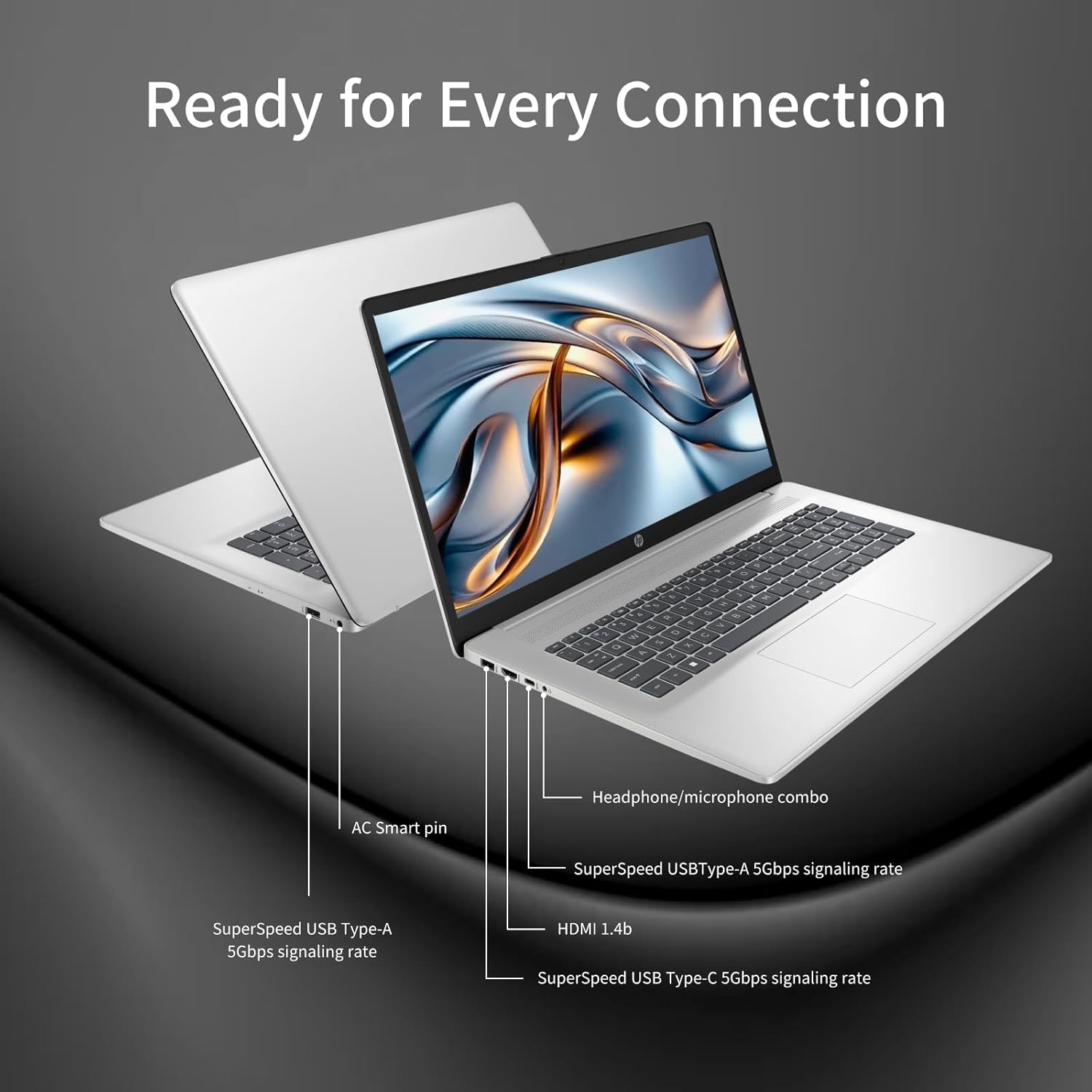Statement:Original Seal is opened for upgrade ONLY. If the computer has modifications, then the manufacturer box is opened for it to be tested and inspected and to install the upgrades to achieve the specifications as advertised.★ HP Laptop 17 Power Meets Portability for Modern Professionals ★✔ Multitask with ease thanks to the powerful AMD processor, fast Wi-Fi technology and plenty of storage space.✔ Everyday computing made easy, with comfort features like HP Fast Charge and a big click pad.✔ HP 17 laptop contains recycled aluminum and ocean-bound plastics and uses 100% recyclable packaging. Plus, it's EPEAT Gold and ENERGY STAR certified.General informationBrand: HPProduct Name: HP 17 LaptopOperating System: Windows 11 ProColor: Natural silverProcessorAMD Ryzen 5 7530UTotal Cores: 6Total Threads: 12Max Turbo Frequency: 4.5 GHzL3 Cache: 16 MB Intel Smart CacheGraphicsAMD Radeon Graphics Type: IntegratedDisplayScreen Size: 17.3 inchesScreen Resolution: 1600 x 900 (HD+)Brightness: 250 nitsFeatures: diagonal, Touch, BrightView, 60% NTSC, 16:9 aspect ratioMemory & StorageUp to 32 GB DDR4 RAM 3200MT/sUp to 1 TB PCIe NVMe TLC M.2 SSDPorts & Slots1 USB Type-C 5Gbps signaling rate (supports data transfer only and does not support charging or external monitors)2 USB Type-A 5Gbps signaling rate1 AC smart pin1 HDMI 1.4b1 headphone/microphone comboFeaturesTouchscreenBattery life: Up to 9 hours and 15 minutesAudio Features: Dual speakersHP Fast ChargeWireless Realtek Wi-Fi 6 (1x1) Bluetooth 5.3 wireless cardWebcamHP True Vision 720p HD camera with temporal noise reduction and integrated dual array digital microphoneKeyboardFull-size, soft gray keyboard with numeric keypadDimensions & Weight15.78 x 10.15 x 0.81 in4.58 pounds