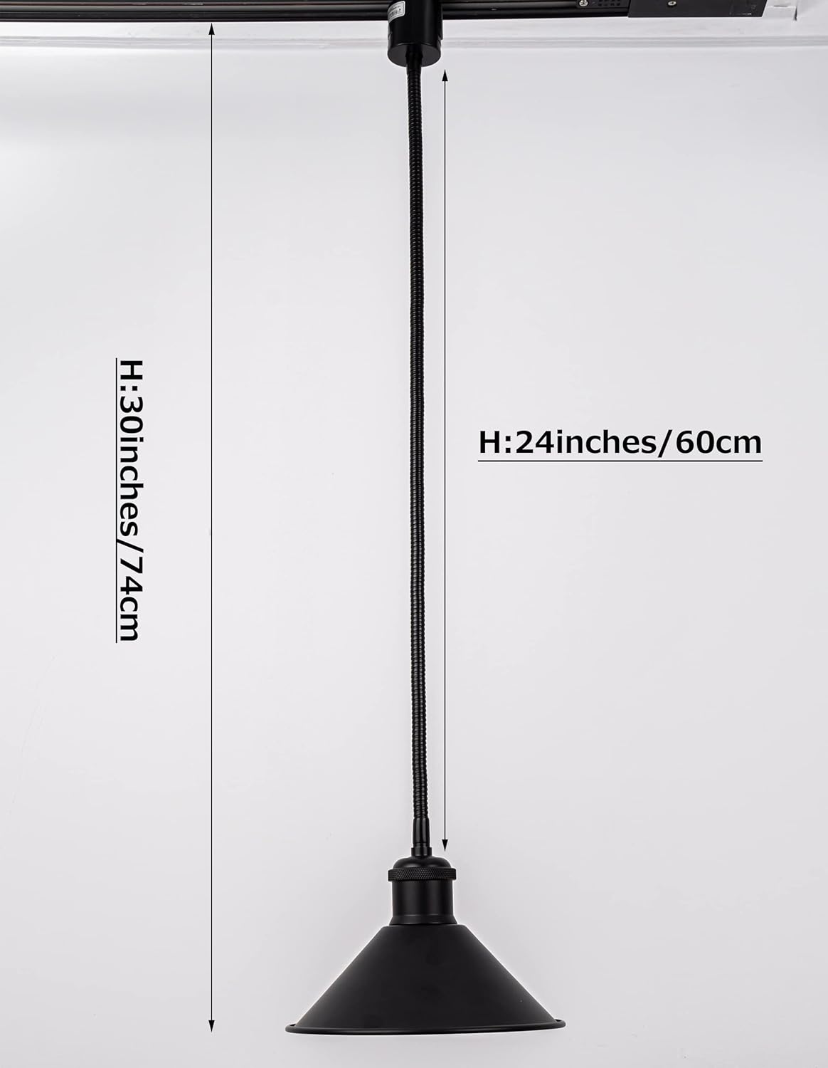 Specifications: Lampshade size: diameter: 7.08in/18cm、Height: 2.6in/6.5cm The total length from the track connector to the bottom of the lampshade is 30inches/74cm Track connector type: J-type 2-wire-1 track light Bulb Type: E26, 60W MAX . Bulbs Not Included You can install the type of bulb you like according to the needs of the ambient atmosphere. Package: 3 * Juno Track Spotlights Style: Simple Style/European Style/Vintage/Loft/Minimalist/Steampunk Applicable Space: 5-10 Square Application: Children room,Study Room, Bedroom, Living room, Dining-Room, Sitting Room, Bar, Hallway, Cafe, Shop, Balcony, etc. Features: 1.Dimmable You can control the light with your wall switch or dimmer(dimmerable bulb). Search the ASIN: B01DBRKSXW,you will find the bulbs. 2.Flexible Adjustable Lamp Sockets: Adjust the swanneck to the desired position by using any bending class. 3.Unique This is a beautiful iron spot lamp, black finished, which is modern and vintage. The color of the lamp socket is optional.(9 colors) 4.Customizable Whether you are installing an Halo Type,Juno Type or L-Type track, you can find the track adapter you want here because we provide customized services for the track adapter. Now, it is time to have your pendant Light to spice up your spaces,the warm desided pendant light will adding warm and has a relaxed feel feeling to you. Kindly Notice Any cooperation or bulk order are welcomed. Let's know your ideas.