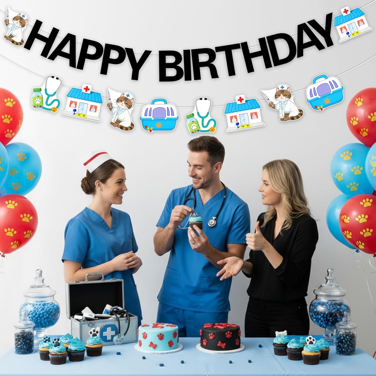 Veterinary Birthday Decorations: 1pcs veterinary happy birthday banner 1pcs veterinary garland Notes: Manual measurement, please allow slight errors on size. The color may exist a slight difference due to different screen displays.