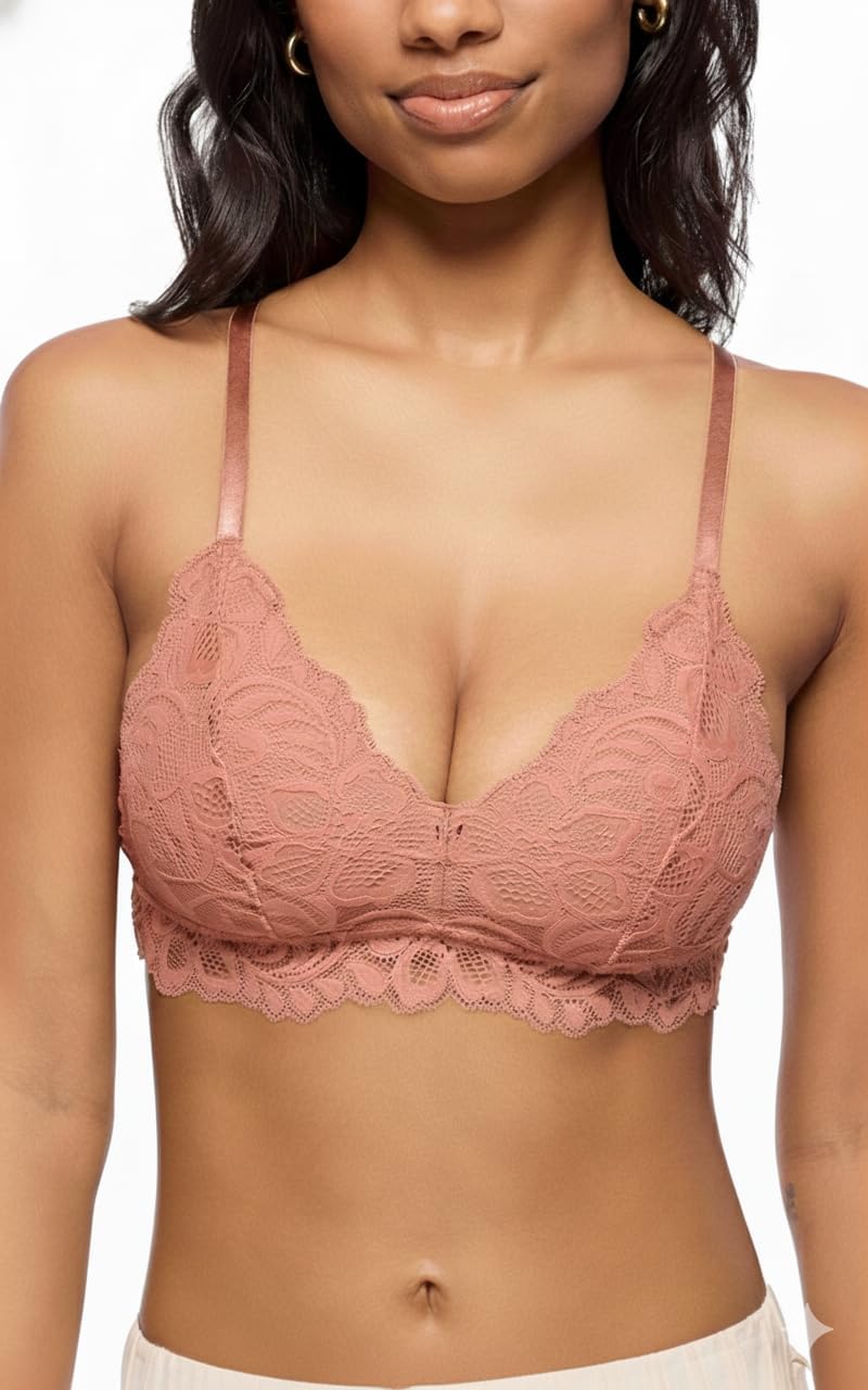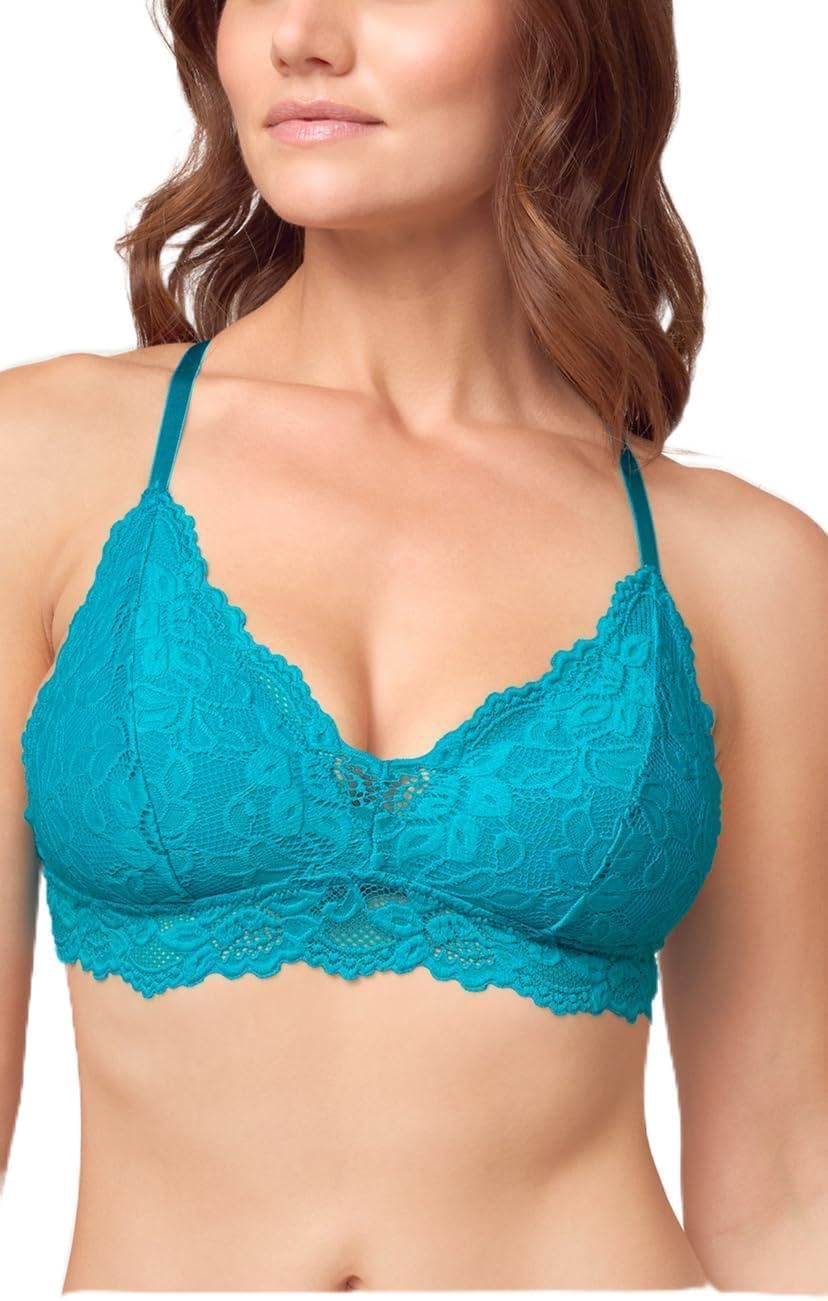 ULTRA SOFT STRETCH LACE BRALETTE: Made of an ultra-soft stretch lace which makes this women's bralette the perfect lingerie piece for sleeping, lounging or a night out. Choose your favorite color from a wide variety of colors. UNPADDED WIRELESS BRA WITH TRIANGLE CUP DESIGN: The sexy bralette for women comes with a triangle cup design and is unpadded/wireless for a natural look and comfortable all day wear. Soft jersey lining for light support and coverage. Ideal for A to D cups. HOURGLASS RACERBACK DESIGN: Try the Katie women's brallete for a unique criss-cross styled strappy racerback with a mix of floral stretch lace. Looks beautiful on its own or peeking out from underneath your favourite date-night top. ADJUSTABLE STRAPS FOR PERFECT FIT: This women's lace bra has adjustable straps for the perfect fit. Fits true to size. Refer to the size chart in images section to choose your right size. COMPLETE THE LOOK: Complete your flirty look with a Jenny Jen Zoe Cheeky Sexy Lace 3-pack Panties, available in Black, Crystal Rose, White, Capri-Breeze, Halogen-Blue and Praline-Chantilly.