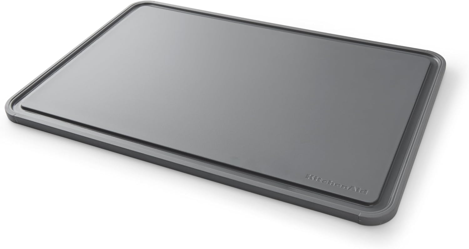 Elevate your culinary experience with the KitchenAid 12x18-inch Nonslip Plastic Cutting Board, a true kitchen essential. Designed with durability in mind, it's a dependable addition to your kitchen, ensuring it can withstand daily use and serve you well for years to come. The innovative nonslip surface provides a secure foundation for all your cutting, chopping, and slicing tasks, adding both convenience and safety to your kitchen endeavors. Crafted from nonabsorbent poly material, it's gentle on knives, protecting their sharpness over time. Measuring a generous 12x18 inches, it offers ample space for a wide range of cutting tasks, making meal preparation more efficient and enjoyable. Plus, it's dishwasher safe, making cleanup a breeze.