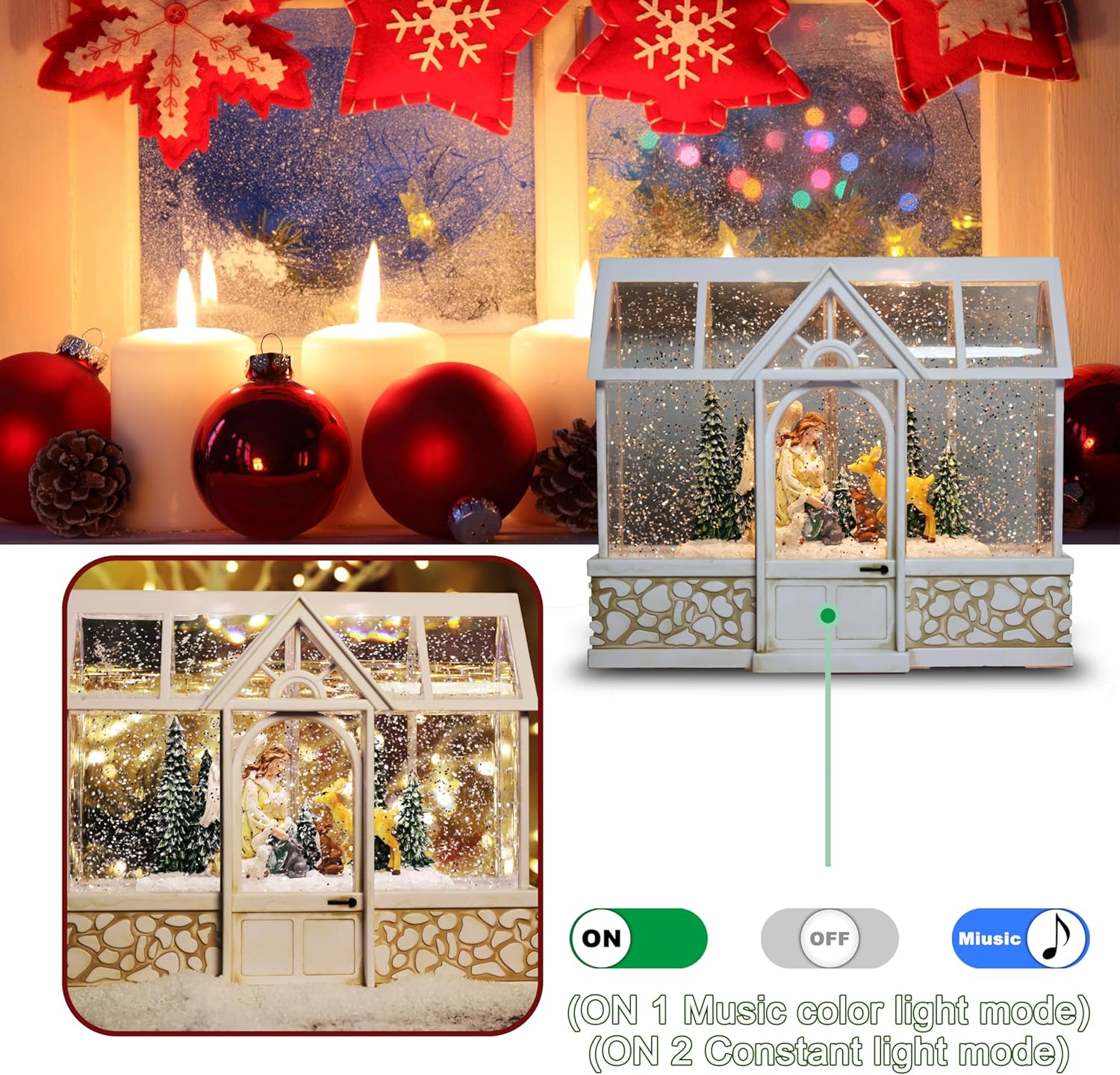 LAMPHOME Singing Battery Operated & Plug-in Musical Lighted Christmas Snow Spinning Water Glittering Snow Globe Lantern Home Decoration and Gift, Xmas Sence