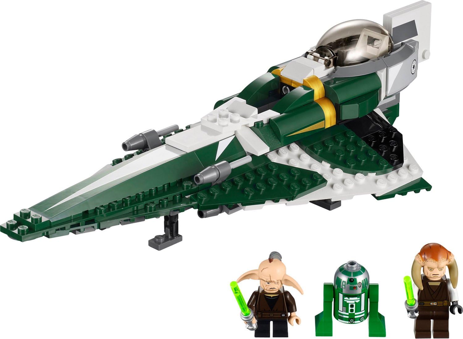 Jedi Master Saesee Tiin is patrolling for Separatist forces in his Jedi Starfighter, ready to go into battle with fellow Jedi Master Even Piell. As well as being extremely light and agile, Saesee Tiin’s green starfighter is equipped with 4 missiles, an R3-D5 droid and if the action gets a little too intense, a cockpit section detaches to become the Jedi Master’s very own escape pod! Includes 3 minifigures: Saesee Tiin, Astromech Droid R3-D5 and Even Piell.