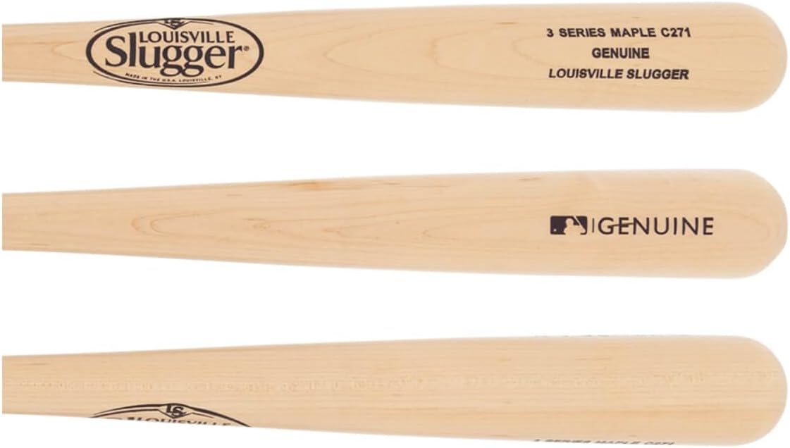 Louisville Slugger Genuine Series 3 C271 Maple Wood Baseball Bat: WBL2517010 Get a wood bat from Slugger that can be enjoyed by any type of hitter out there! Bat Benefits This maple will be wood that displayed a minor flaw during the production process. Because of that minor flaw, Louisville Slugger allows us to sell the bats at a lower cost which is a big bonus for the customers! As well, this bat is cut in the 271 turn which is used all over by contact and power hitters. The bat has a really manageable barrel and long taper from the barrel to the handle. The knob on the bat is super cool as it features a really large flare to it that is similar to the knobs of a lot of pro hitters! If you have any questions about Louisville Slugger wood bats, please reach out to our Bat Experts.