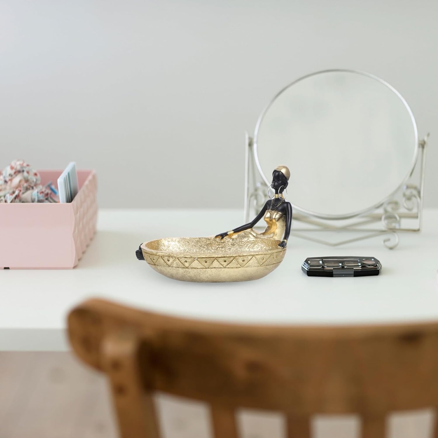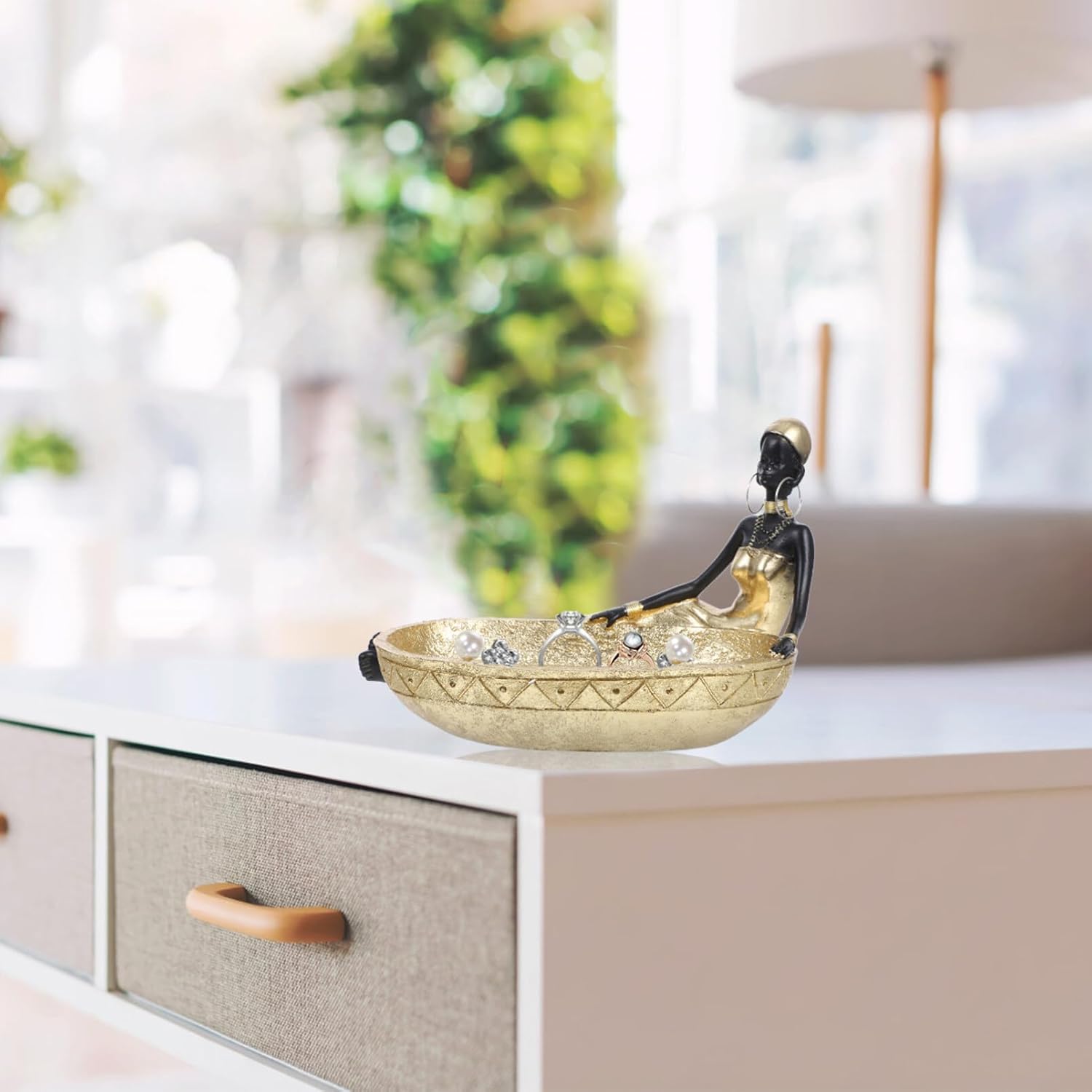 DescriptionMade of sturdy material, the jewelry plate is not easy to wear out even after long time use, for your dresser, vanity or bathroom shelf. This elegant jewelry tray is designed to meet the needs of holding any ornament jewelry. Never worry about not being able to find your jewelry again.Features-Color:Multi-Material:Synthetic resin-Size:22.50X16.00X14.40cm/8.84X6.29X5.66in- craftsmanship, Trinket Dish is very suitable as a good present for friends and family.-Decorative and beautiful, creative and chic, Ring Dish is very practical and to use.-Light weight, African Style Trinket Dish is very easy to move and clean, and convenient to use. for bedroom dresser or night stand ring holder or in the kitchen. -Made of synthetic resin materials, our Jewelry Storage Plate is and safe for a long time use.-Suitable for many occasions use, practical, good texture and excellent craftsmanship.Package Including1 x jewelry tray