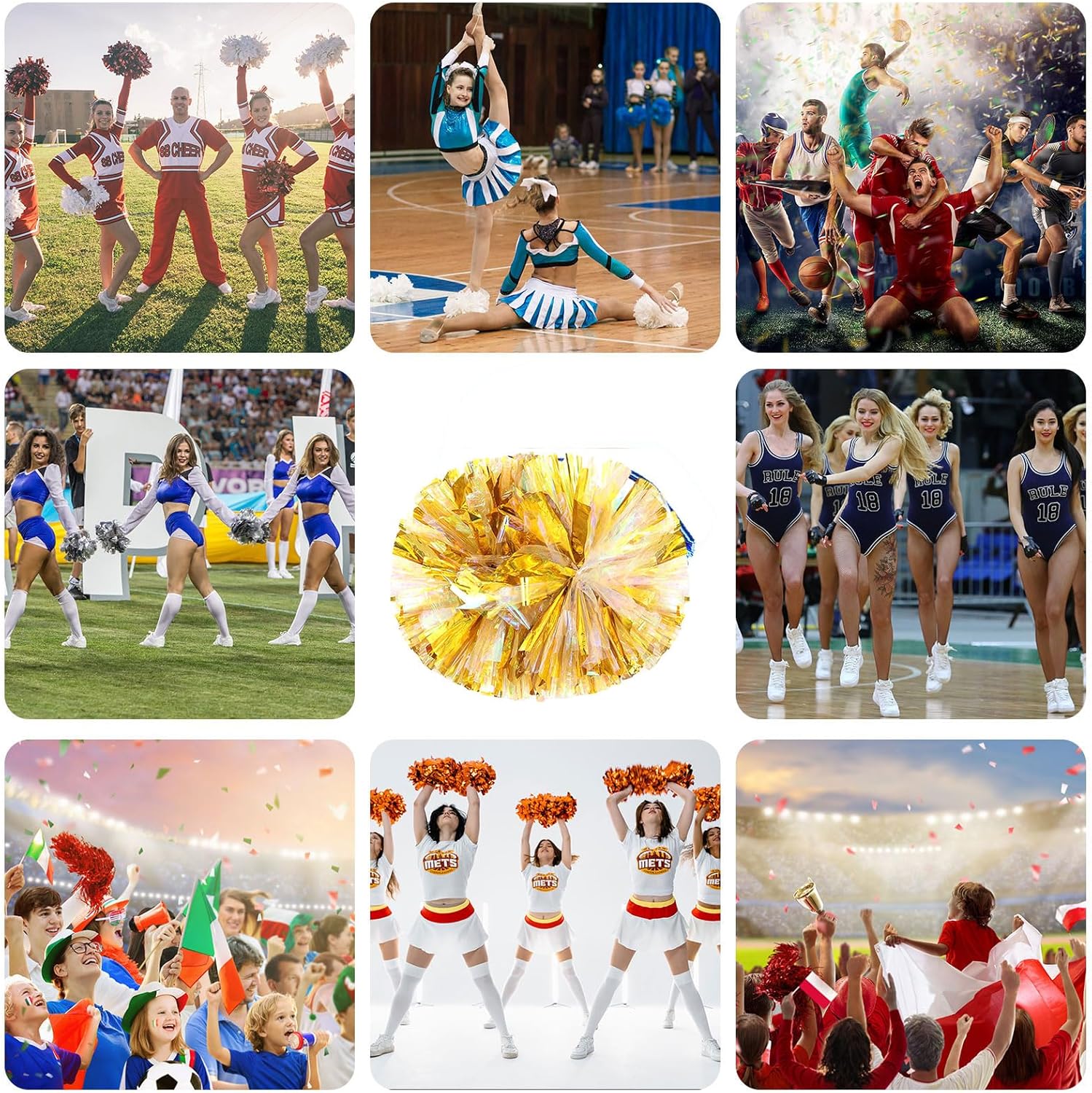 Package include: 24 x Metallic Cheerleading Pom Poms