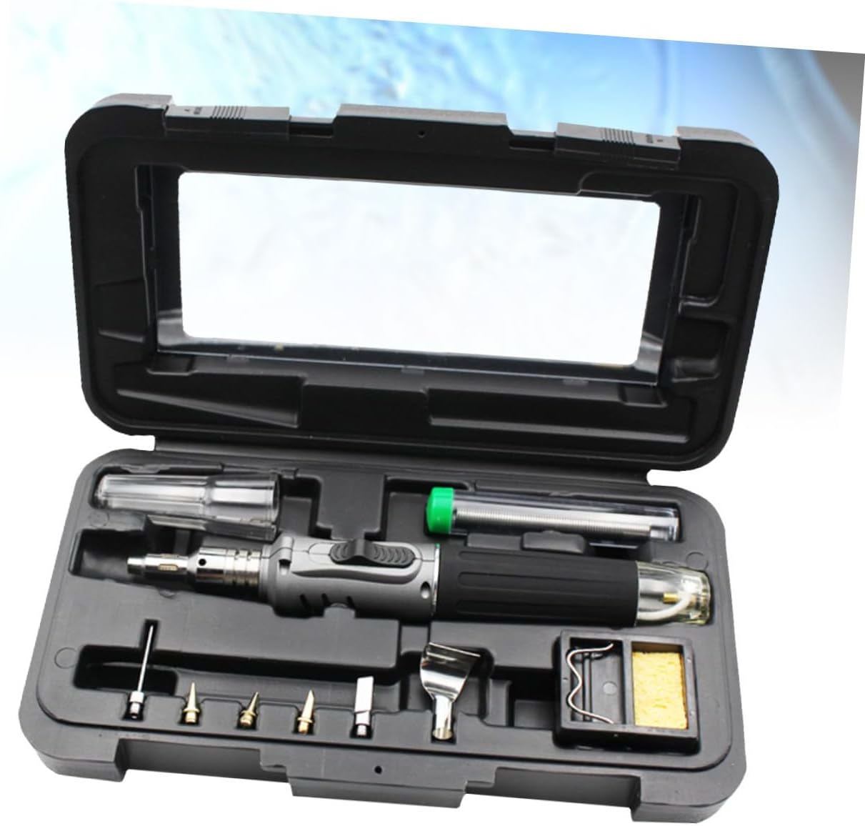 Package Include 1 x Soldering Iron Kit Features - Color: Gray propane soldering iron - Material: iron gas soldering kit - Size: 21.00X4.00X2.00cm/8.25X1.57X0.79in - Self-igniting Cordless Iron, ESD safe to protect components gas soldering iron kit - It's cordless with no bulky cord or to get in the way and can be used in areas where no plug is available gas soldering iron. - Torch flame temperature 1300℃, soldering tip temperature 400℃ cordless soldering iron - Great for use in jewelry making and repair, brazing, model building, working with electrical and electronic circuits, general and drying, light gauge welding, PVC bending, arts and crafts uses, and more. - Refillable gas powered, automatic cut-off when for safetyGoods Informationgas soldering kit This soldering iron kit can be used not only for soldering but also for welding, as a torch or even a.gas soldering iron kit Great for use in jewelry making and repair, brazing, model building, working with electrical and electronic circuits, general and drying, light gauge welding, PVC bending, arts and crafts uses, and more