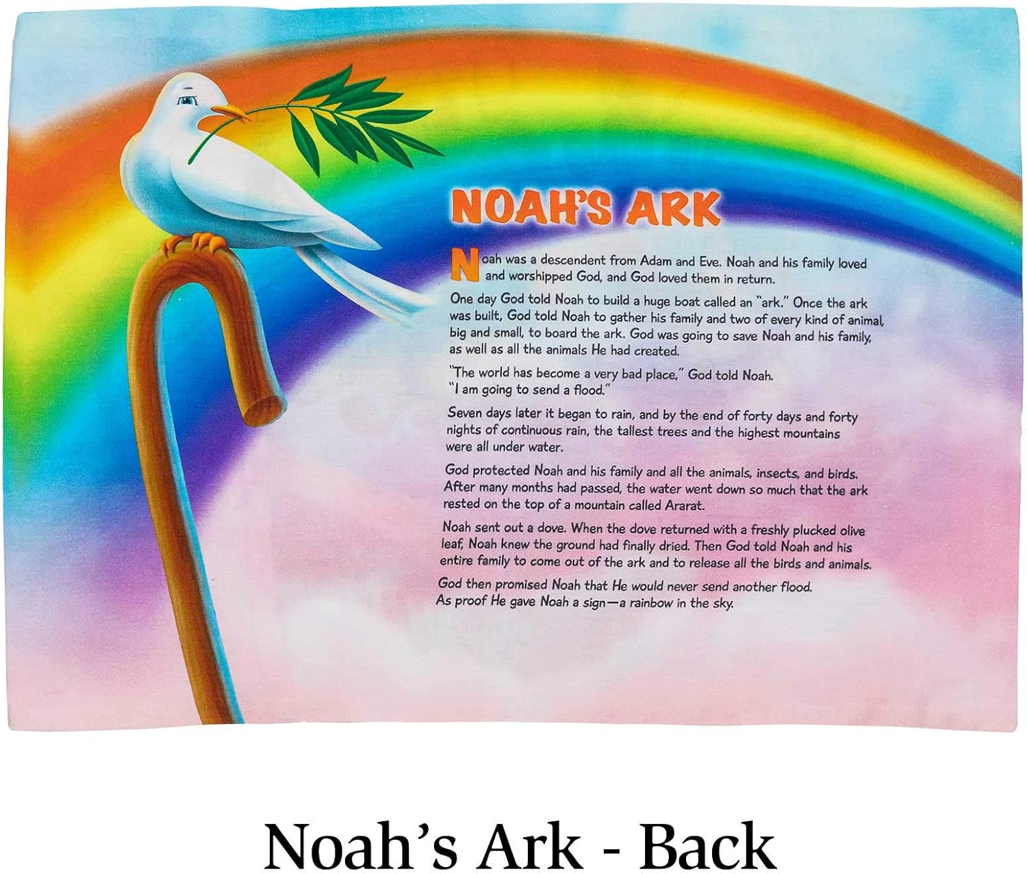 This children's pillowcase features the beloved biblical story of Noah's Ark, designed to provide comfort while introducing young ones to classic scripture tales. The pillowcase showcases colorful imagery and characters from the Noah's Ark narrative, making bedtime both cozy and educational. Crafted with soft, quality materials suitable for children's use, this product combines functionality with faith-based storytelling. The design helps create a nurturing sleep environment while fostering an early connection to biblical teachings through its engaging visual presentation of Noah, the ark, and the animals.