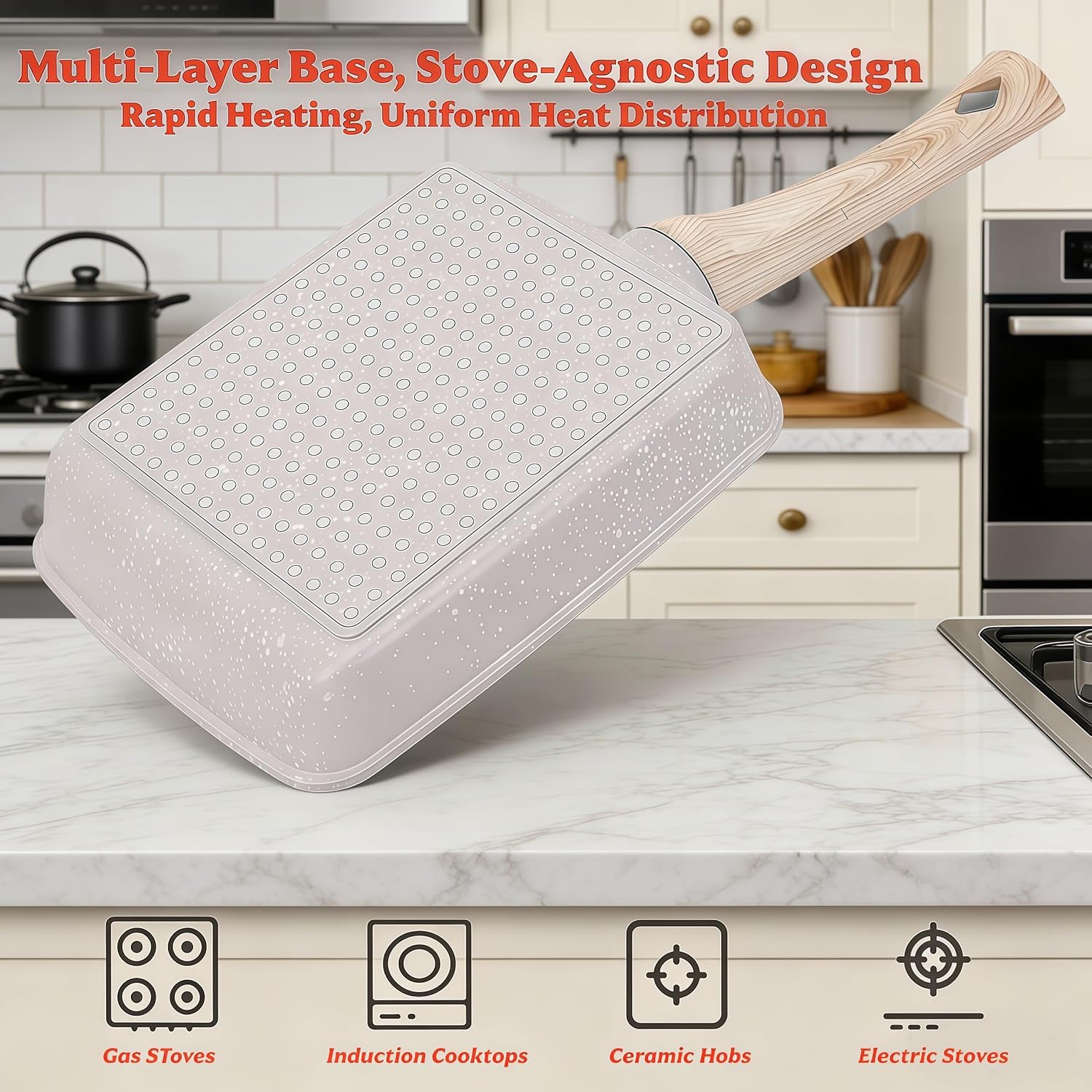| Additional Features | Detachable & Ergonomic Handle, Electric & Gas & Induction Stovetop Compatible, Lightweight, Non Stick |