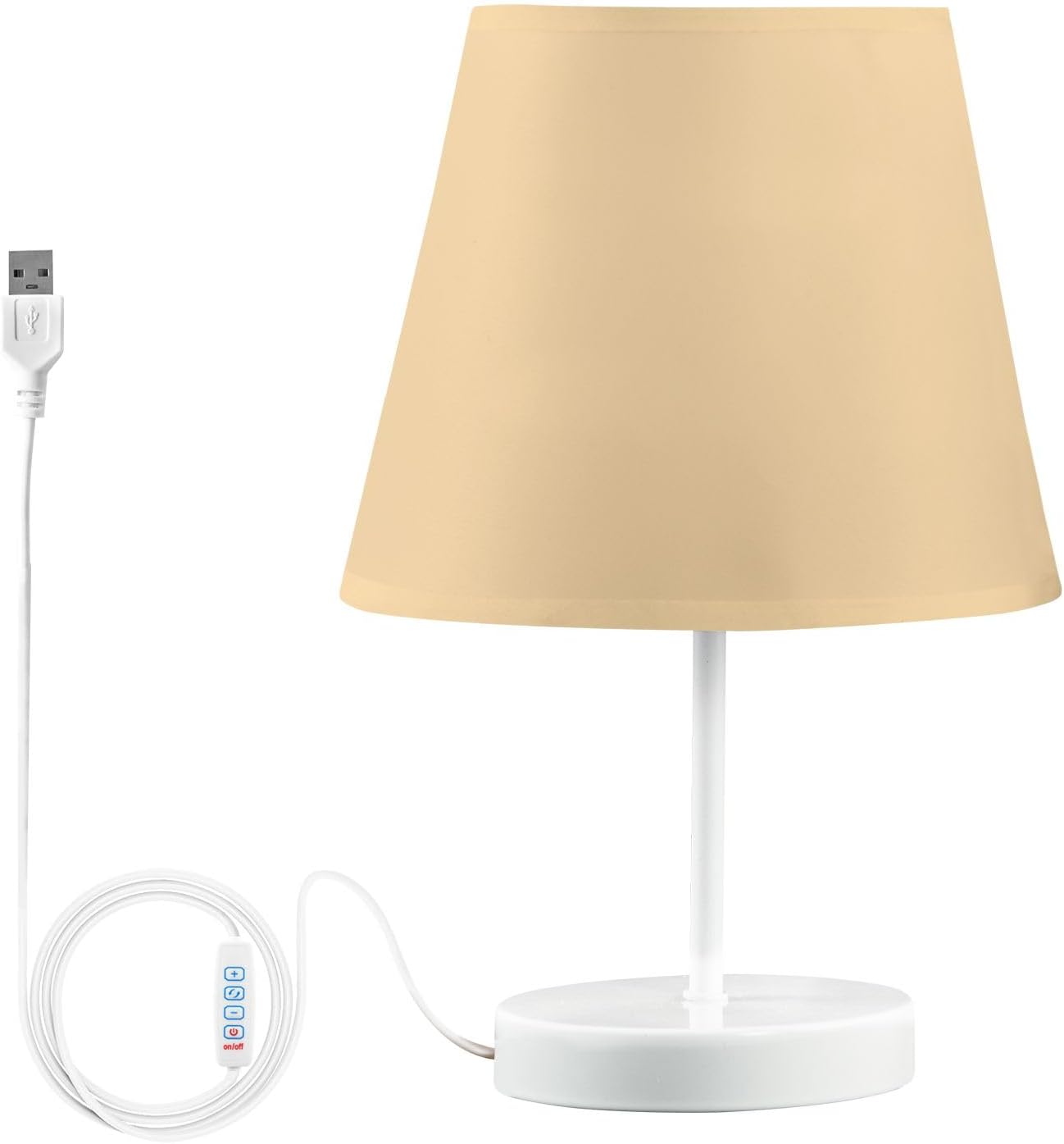Introducing our USB-Powered LED Table Lamp, a perfect combination of simplicity and functionality. This lamp features a burlap fabric lampshade, a built-in LED light, and a sturdy metal base, providing a hassle-free experience with no need for bulb installation. The USB power cord (1.3m long) ensures easy plug-and-play functionality, while the button switch allows for quick and convenient control of the lamp.Enjoy three adjustable light modes (warm, neutral, and cool) and 10 brightness levels, allowing you to customize the lighting to suit different occasions, from reading to relaxing. The eye-protective design ensures that you and your family can enjoy the perfect amount of light without eye strain.Available in two sizes to fit your space:Small (S): 15cm (5.9in) diameter, 27.5cm (10.8in) heightMedium (M): 20cm (7.9in) diameter, 30cm (11.8in) heightBoth sizes feature the same metal base, offering stability and a modern look. The minimalist design is perfect for any room, including bedrooms, living rooms, offices, children's rooms, and more. The lamp’s soft, ambient light creates a cozy and stylish atmosphere wherever it is placed.Easy Assembly:This Small Bedside Lamps arrives with the lampshade and base pre-installed in reverse for protection. To assemble, simply press the center lock, detach the lampshade, flip it to the correct position, and snap it back into place. No tools required—just plug in the USB and enjoy.