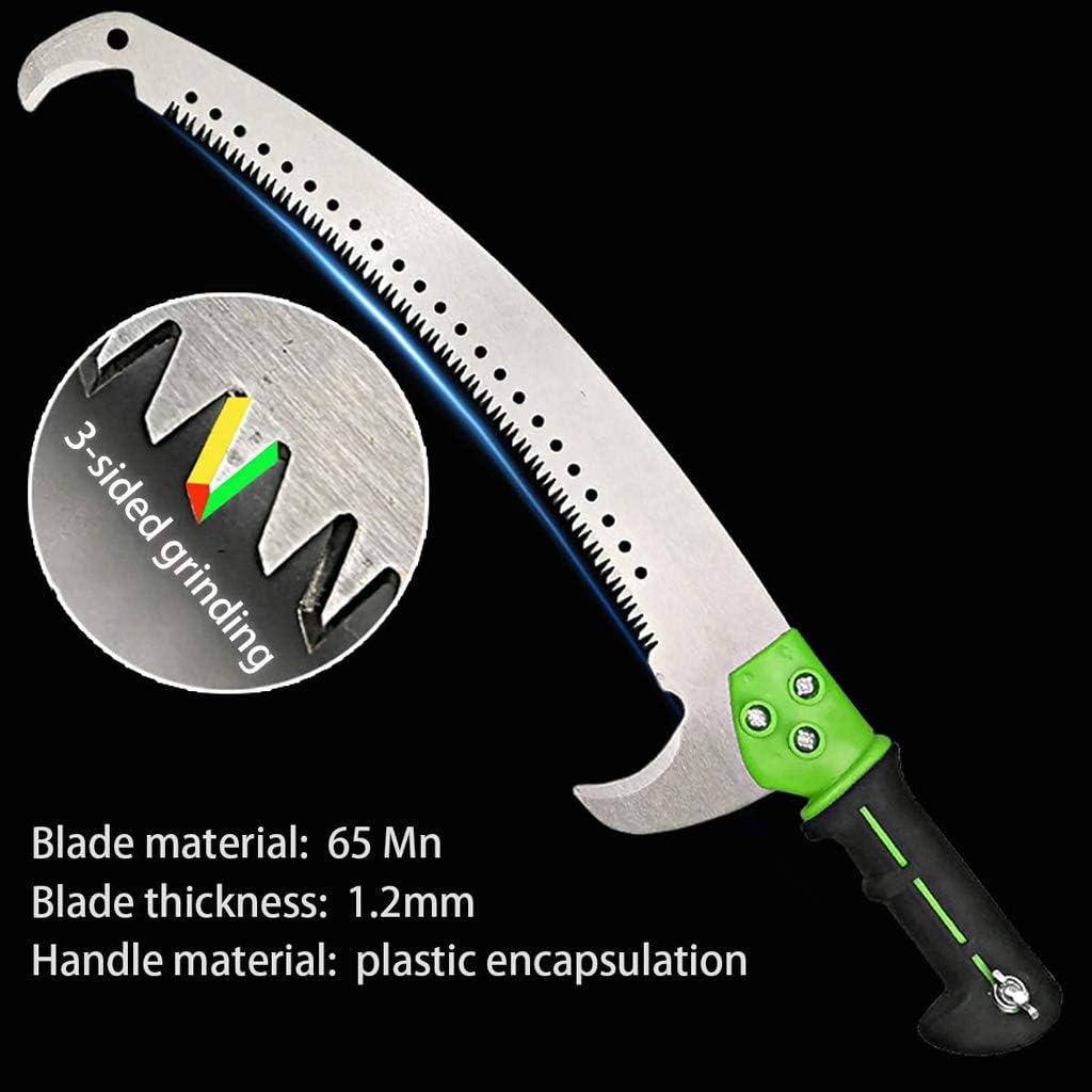 Double-hook high-altitude branch saw 3.6-5.4M telescopic rod lengthened garden hand saw high-altitude saw fruit tree flower tree pruning sawHigh-altitude fruit tree branch saw telescopic lengthening super long pruning telescopic high branch sawSpecifications: Product name: Handle type big tree trimmer Type: Anvil Material: Metal + Light aluminum Blade material: 65Mn steel Handle material: Lightweight aluminum handle Grip: Soft foam Handle size: 3.6M/5.4M Handle type: Telescopic expansion Features: Non-slip, Foldable Handle, Length, Telescopic handle Uses: Branch cutting/GardenPackage Contents1 x Telescopic pole1 x Pruning sawImportant note: Using advanced hand saws, you must practice mastering woodcuts!