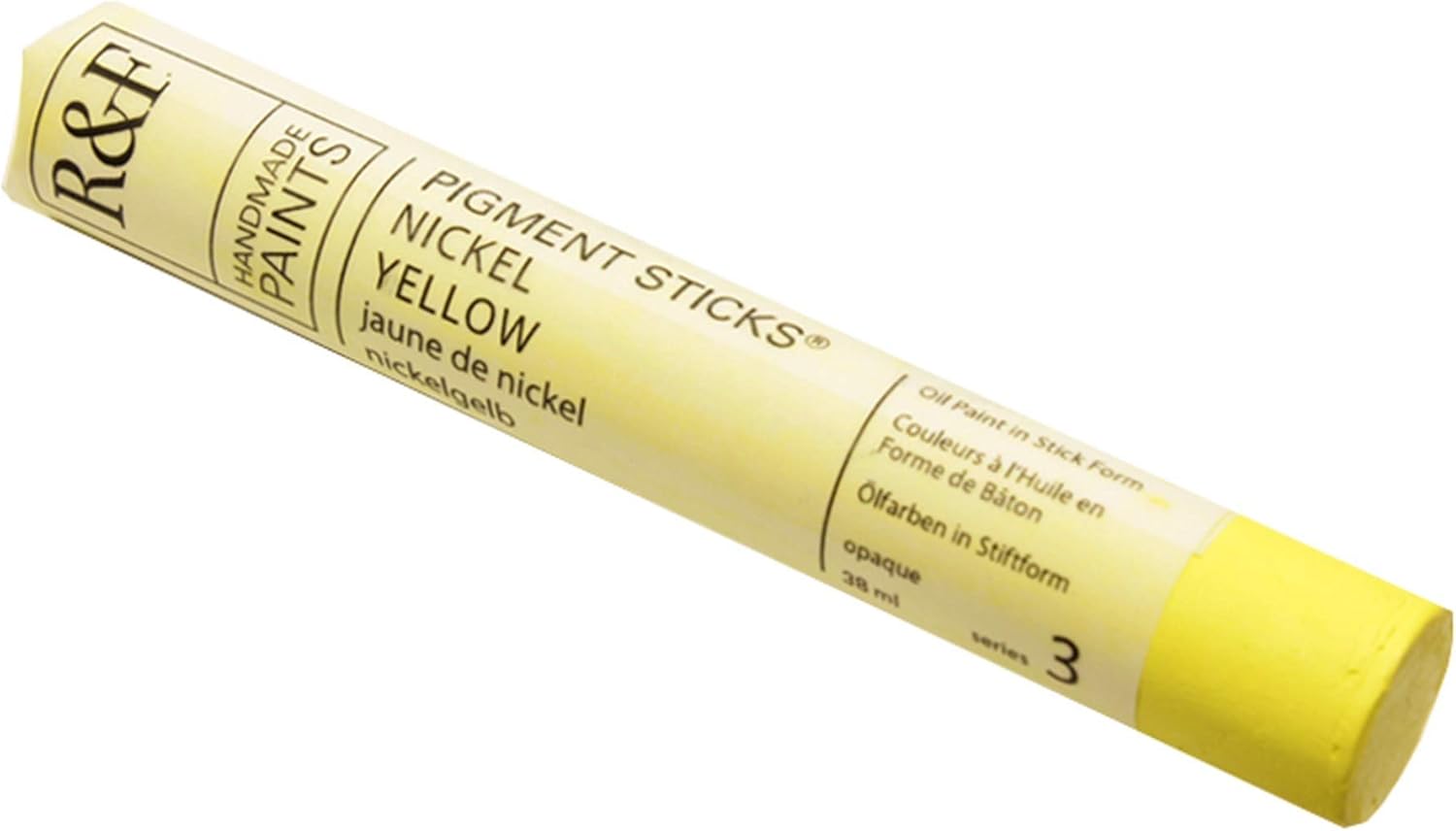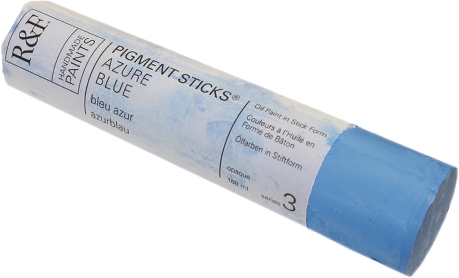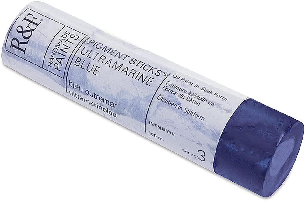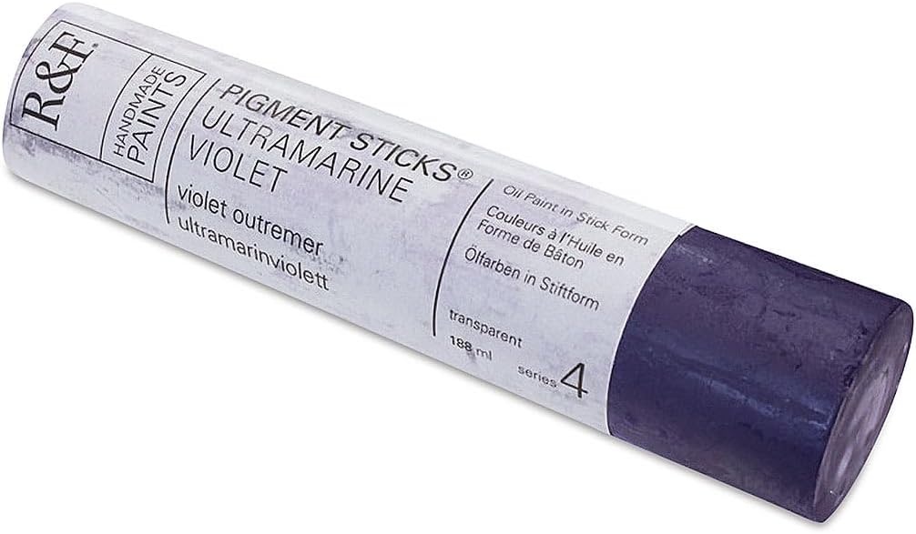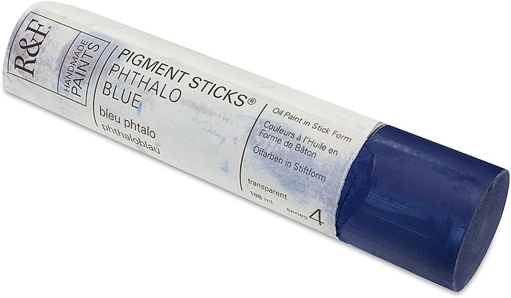 R&F Pigment Sticks are oil paint in stick form. Pigment Sticks allow the painter to draw or paint directly onto a surface without brushes, palettes, paint tubes, or solvents. We use only the basic traditional materials: natural wax (beeswax & plant wax), linseed oil, and pigment. The result is an oil stick with a lipstick soft consistency. Pigment Sticks have none of the additives, extenders, substitutes or facilitators that are commonly used in industrial production. While the use of these adulterations can save time and reduce cost, they lower the quality of the paint. Consequently, our formulas are complex and our manufacturing is labor-intensive. All paints are handmade in small batches, carefully milled and molded. R&F Pigment Sticks are available in over 100 beautiful colors, see each individual color for a description of the unique color. R&F Pigment Sticks are available in three sizes: 38ml, 100ml and 188ml. Proudly made by hand in the USA.