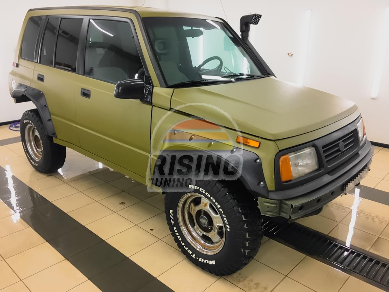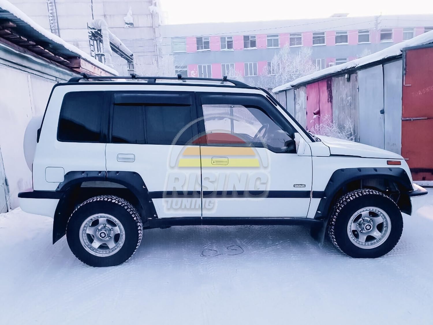 New at RisingTuning! Widebody kit intended for 5-door version of Suzuki Vitara, Chevrolet Tracker, Geo Tracker, Suzuki Sidekick, Suzuki Escudo - 1st generation. The main feature of this fender flares set is that the set was created for cars that did not have factory body extenders in the package. Difficulties for the owners of these cars were that if the body did not have body extensions from the factory manufacturer during assembly, then to install the standard set of extensions from another version was not possible, because the method of attachment was on the clips - and this is the standard holes throughout the body for fastening clips, which are not in versions without factory extensions and high moldings. It turned out that the standard extensions did not fit to the bodies for which they are not provided, but this is in the past, now there is a ready-made solution from our company Rising Tuning.Item Content: Wheel arch extenders set (fender flares) replacement for Suzuki Escudo - 8 pcs. *Only for 5-doors versions. *Is not applicable for car configurations with OEM plastic factory arches, and high side moldings. See photos in the galleryMaterial: High quality ABS-Plastic (Thickness 3mm)Features of this product: Made of ABS plastic, this is not FRP Surface finish: Textured black, no adjustment is needed, can be used without painting. This fenders can be fastened with Bolts / 3M double tape / Black car sealant. The product is unpainted. Therefore can have small scratches. We do not offer work to painting car parts to export.Installation: May require some minor adjustments to your body depending on the model, if you have low side moldings you will need to cut off the excess for a tighter and proper fit to the body ( Examples in the gallery). Expanders are mounted on bolts or black sealant or double-sided 3M tape. To install - we recommend to contact a professional bodyworker and use sealing tape for proper and tight connection, as well as seals work as a natural damper and compensate for the different densities of materials and distribute the stress across the entire line of mating. If fastening with rivets - do not forget to treat the surface before installation and treat the holes to protect the body elements.Important information: The wheel arch extender kit is not suitable for versions with factory wheel arches and side moldings. Such models are distinguished by large bumpers, factory wheel arches and high side moldings. (Example in the necessary configuration in the gallery). The extender model was created based on models that do not have factory arch extenders.This widebody is compatible with this cars:Japan & World: Suzuki Escudo, 1 Gen, SUV 5-doors, Years: 09.1990 - 11.1994, Body: TD01WYears of issue: 1990, 1991, 1992, 1993, 1994 Advantages of ABS plastic: Optimal combination of shock resistance and elasticity provides longevity of the products. Under light torsion loads plastic elements restore their original shape without residual deformation. High dimensional stability which allows manufacturing of complex molded products with high accuracy. Good adhesion to paint materials, which allows them to paint products in any desired color.Material of this wheels arch extenders: Different materials are used for manufacturing car tuning elements, the beauty, practicality and durability of the parts depend on their properties. To make you satisfied with the results, Rising Tuning manufactures and procures car parts including ABS plastic, a polymer that differs favorably from other materials. This plastic demonstrates increased impact resistance, in which it surpasses styrene copolymers - polystyrene. This material is also characterized by mechanical stiffness and strength, wear resistance and resistance to deformation and melting in short-term heating up to 100 degrees Celsius. At temperatures up to 70-80 degrees Celsius, products made of this polymer can be used for a long time without their qualities deteriorating and while maintaining dimensional stability. These properties allow to use ABS plastic for manufacturing of the most various elements of car body