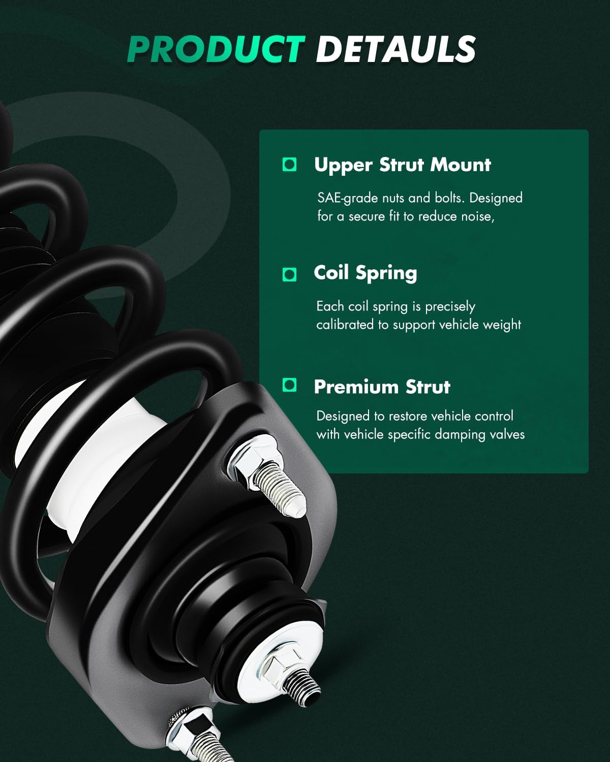 | Included Components | 2pcs rear Complete Struts Spring Assembly |
