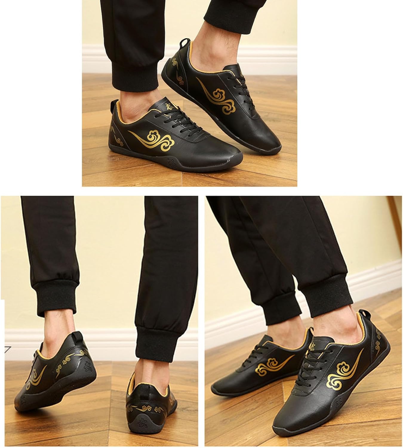 A pair of Tai Chi shoes that are especially good for your feetEven if it is a simple pair of Tai Chi shoes, we all hope produce extraordinary surprises to your activity▼ABOUT SHOE SIZE:1. Please measure your foot length before buying. If your foot is wide or wide, it is recommended to buy 1-2 sizes larger;2. Foot length + 1.5 cm = inner length of the shoe. After measuring, check the size picture to adaptation the corresponding shoe size. It is best to leave a width of 1-2 cm, about one finger;▼METHODS FOR MEASURING FOOT LENGTH:1. Place your foot on a whitesheet of paper and draw a point on the top of your toes and heel respectively;2. The distance between the two points is the length of your foot;3. It is best to measure your foot length at night, when the bulk of your foot will be slightly larger than in the morning.▼SPECIFICATION:Material: LeatherColor: black/whiteSizes: EU34-44 (220-270mm)Performance: Tai Chi/Martial Arts/Morning workout Performance/Leisure/Sports❗❗❗Please measure your foot length before purchasing. If your foot is wide or wide, it is recommended to buy 1-2 sizes larger?-PACKAGE INCLUDES:1 x Tai Chi martial arts shoes▼NOTES:1. Odor: The product may develop a slight odor after prolonged use. It is recommended to dry it in a ventilated region2. Due to different display conditions, the actual color of the product may vary slightly from the image.3. Due to manual measurement, there may be a deviation of 1-3 cm.4.