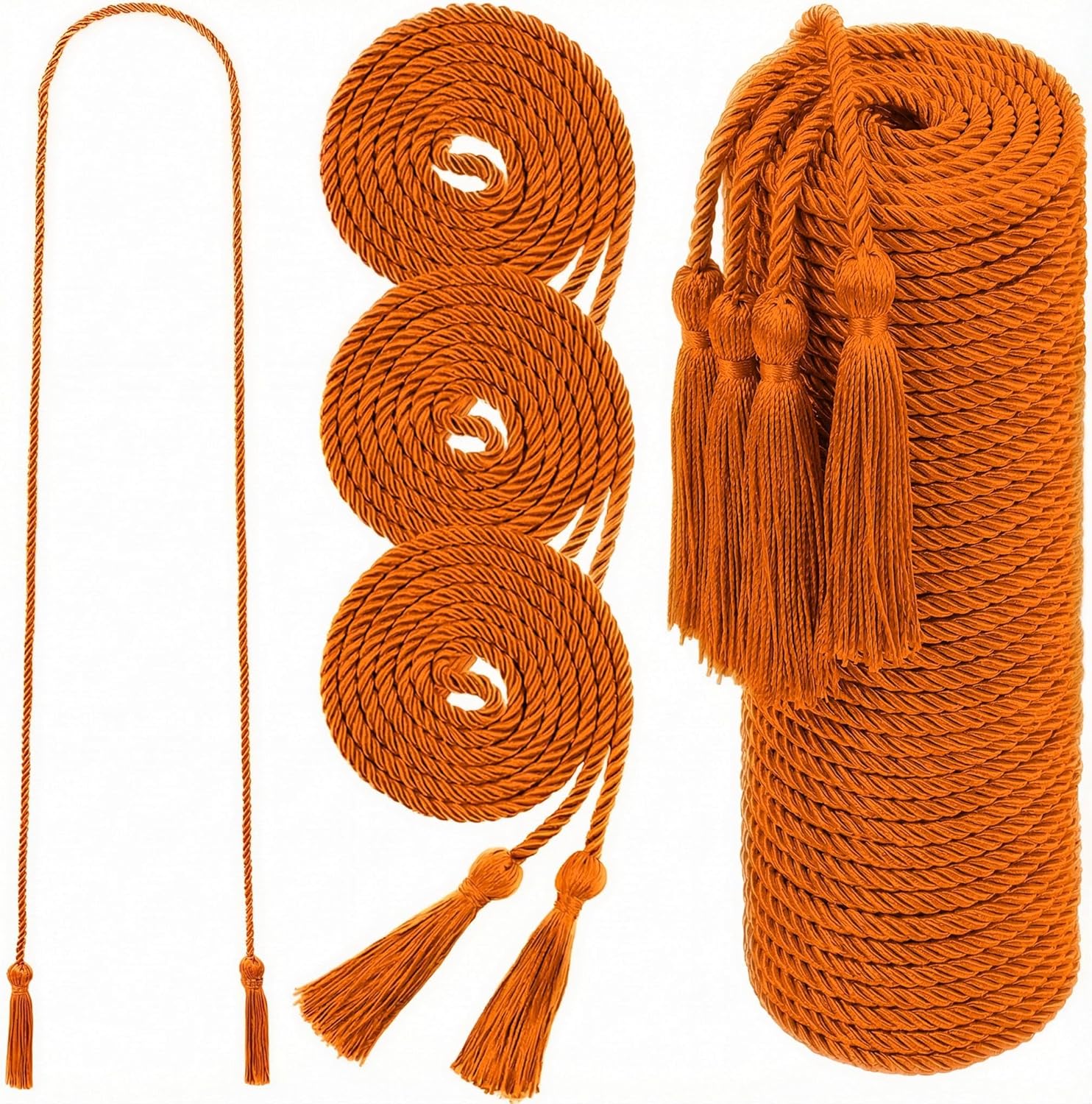 Features: Honor cords usually represent students' outstanding performance in academic, social, and professional activities. These honor cords are not only a symbol of personal achievement for students, but also a recognition and encouragement from the school for their performance. There are multiple options for a wide range of colors, including solid or mixed colors Specifications: Color:A variety of colors available Size: 68" inches Quantity: 48 pieces Material๏ผHigh quality polyester