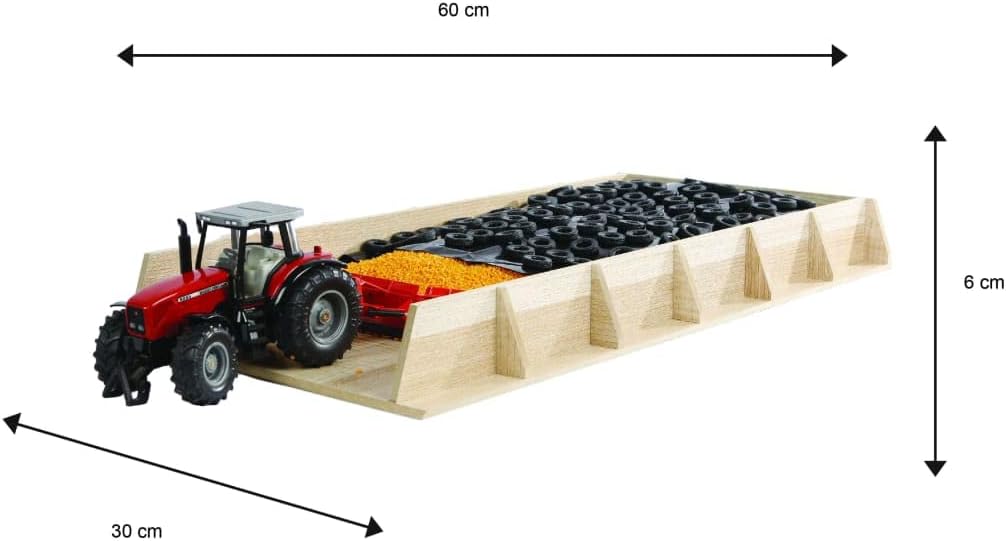 Your young farmer will enjoy this quality Silo Bunker in 1/32 scale size. They can finally enjoy the fun & operations of an actual farm and storage. Specially made for use in combination with Many 1/32 toys Including ERTL & Universal Hobbies & Siku Both grass and corn are mown for the cows in the summer. In the winter, the farmer can then remove the feed from the silo with the tractor. If you want to keep the cows' food well, it is smart to put a cover over it. It cannot rain or spoil. The straps included ensure that the pool cover does not blow away. Cover and Tires are sold seperately !