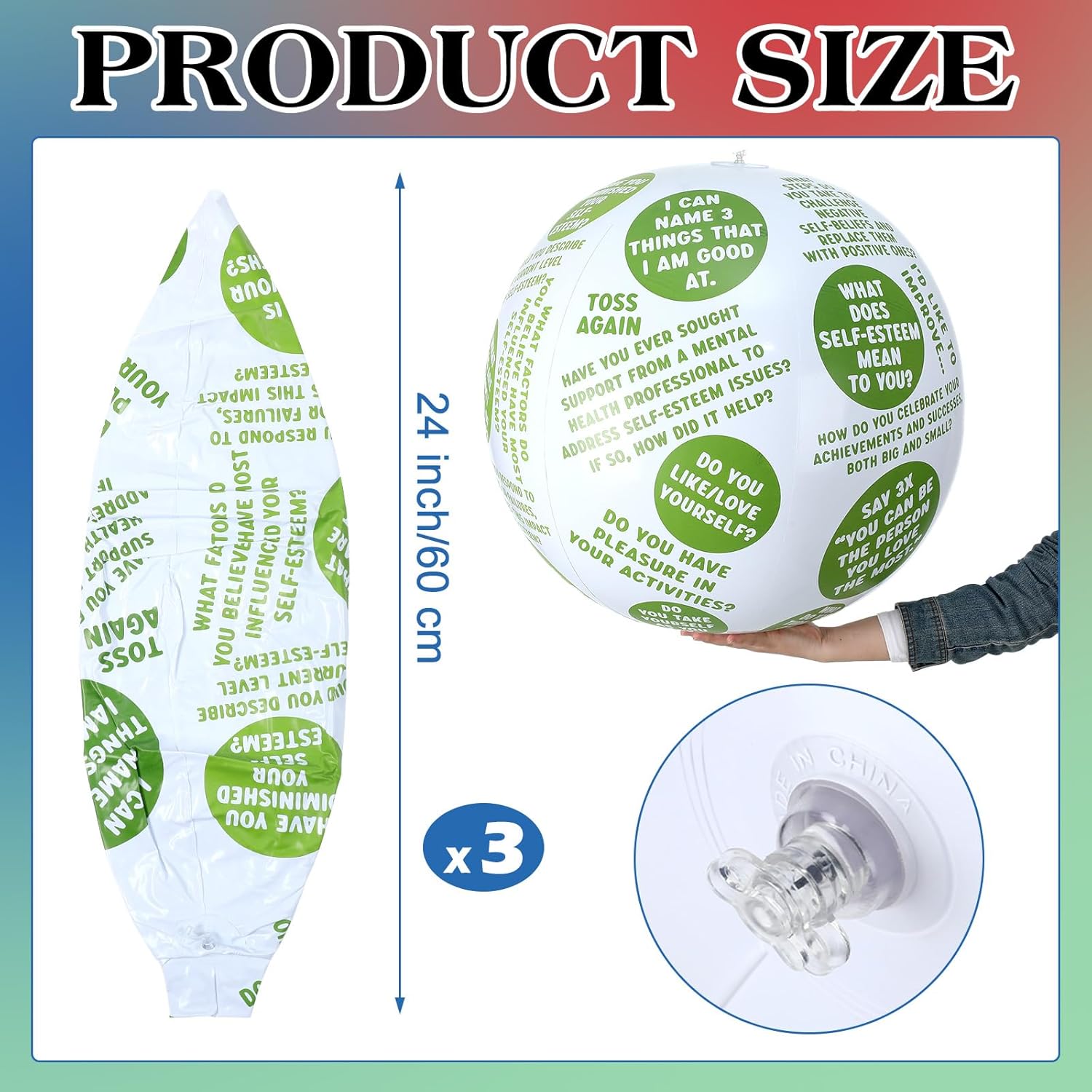 | Included Components | 1 x Anxiety beach ball, 1 x Coping skills beach ball, 1 x Self esteem beach ball |