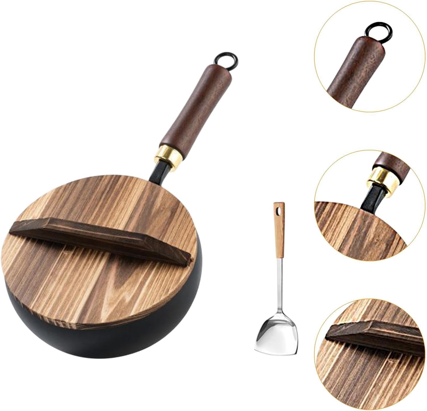 Description: - 【Feature】: This wok features non coated surface, non stick, making it easy to clean - 【Efficient Heat Distribution】: Designed with a wide, flat bottom, this wok pan ensures quick and even heating - 【Material】: Stir Fry Pan made of iron material, which is sturdy for long term sue - 【Design】: The wooden handle allows for easy to handle, while the matching wooden lid speeds up cooking time - 【Package】: Comes complete with a small wok for personal use, wooden lid, spade for your cooking needsSize Chart:Total Length:45cm/17.72inchHandle Length:16cm/6.30inchHeight:11cm/4.33inchDiameter26cm/10.24inchPackage Includes:1 Wok Pan1 Lid1 Cooking spadeNote:Please allow slightly errors 1-2cm differences due to manual measurement.