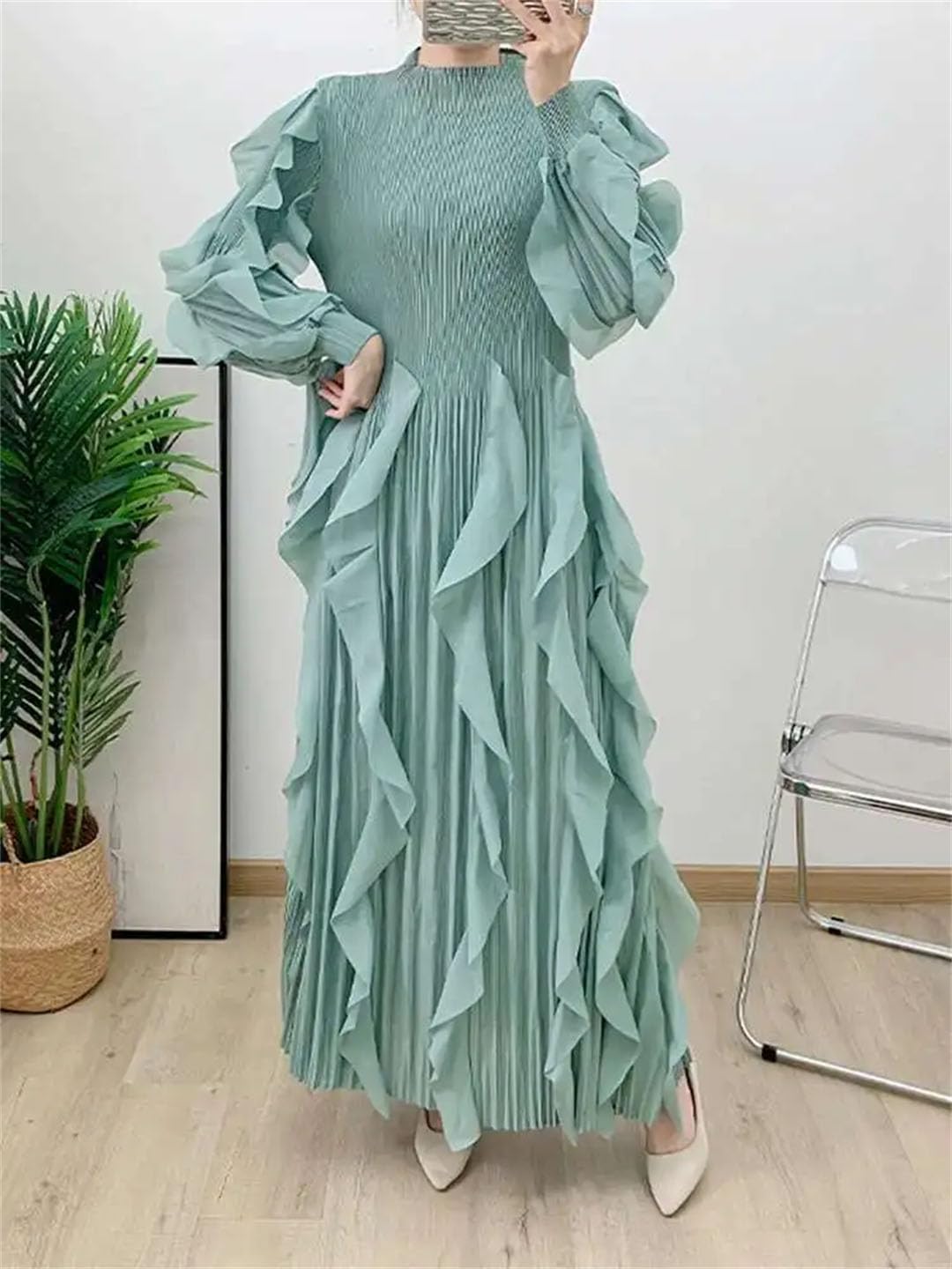 Material:PolyesterClosure Type:PulloverSeason:Autumn/WinterNeckline:StandWaistline:EmpireDresses Length:Mid-CalfSleeve Length(Cm):FullPattern Type:SolidSilhouette:A-LineStyle:CasualGender:WomenElasticity:High StrecthFit Type:Loose Fit