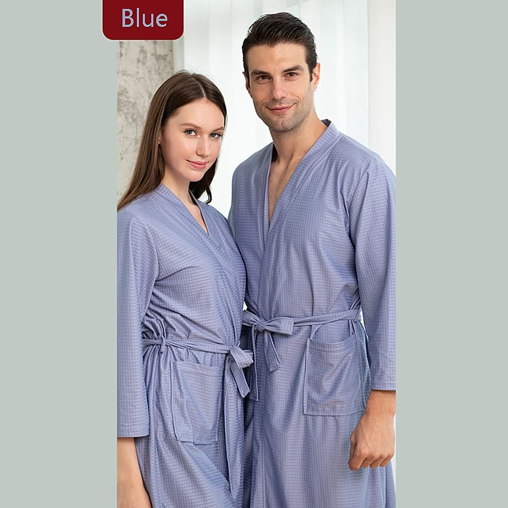 : ? Bathrobe is made of 100% and has 2 patch side pockets and a flexible belt for additional comfort. ? Comfortable and absorbent waffle-weave material makes the perfect for lounging at the spa, for drying off after the pool or hot tub, or for relaxing at home on a cold morning. Product specifications/parameters: Ingredient: 100% /Waffle Weave Size: M, XL, XXXL Colour: Blue. Applicable people: Men, Women Length: Mid-length Applicable season: Spring and Autumn, Home service style: simple *Washing instructions: do not bleach, hang to dry in a cool place, iron temperature does not exceed 110 °C, do not dry clean. *Due to different monitors, color aberration problems occur, so purchase with caution. *Note: If you are unsure of what size to order, please contact us and we can recommend a size for you.