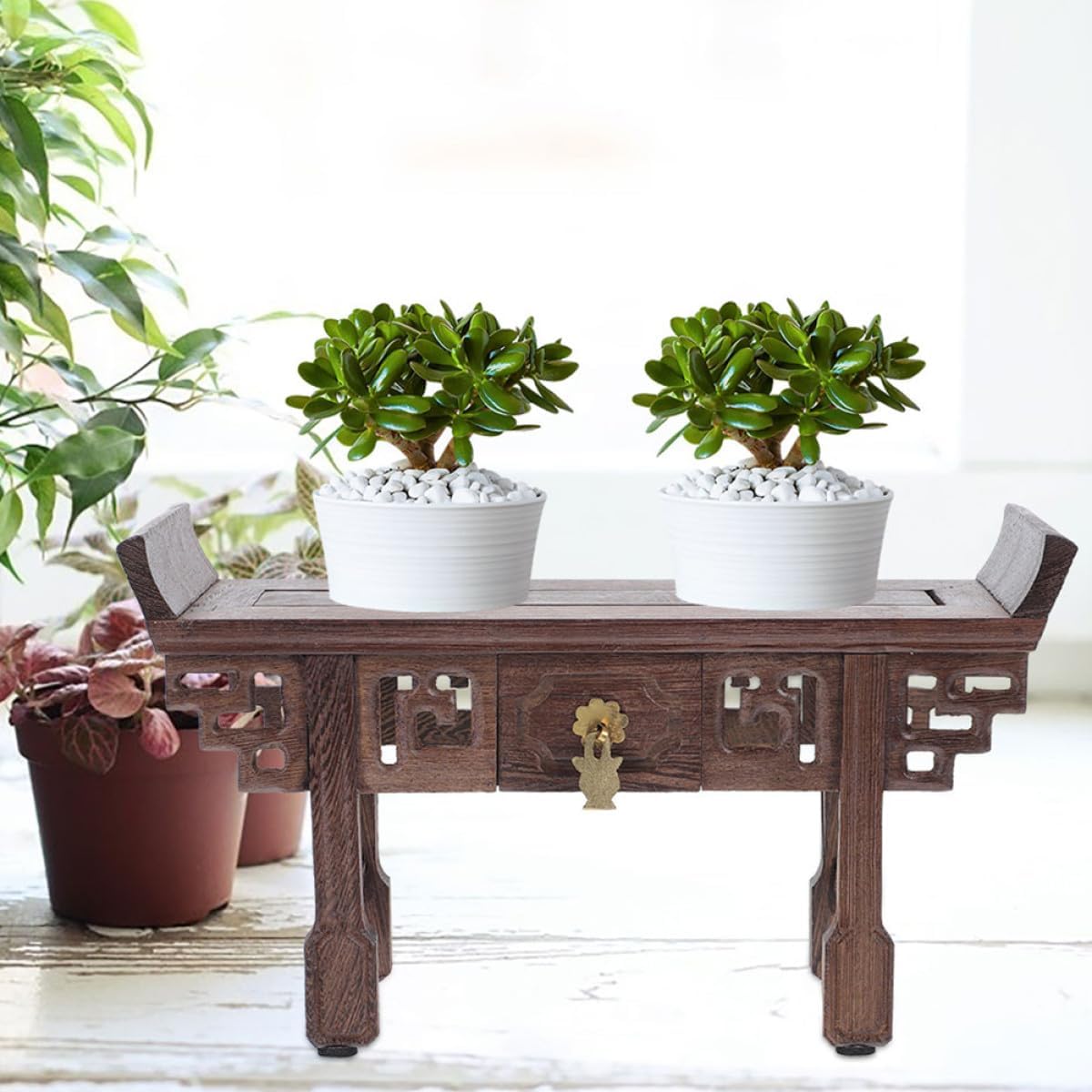 Package List 1 x wood display holder Characteristics -Color:Coffee -Size:31.00X15.00X9.50cm/12.18X5.89X3.73in -Product Info:Wood carving display stand -Material:Wood -Fine workmanship, rustic style design, unique and attractive, wood display base is a nice decor potted plant rack. -A blend of vitality and rustic style, which adds an atmosphere of life to your room space display holder. -Widely applied in home, office, coffee shop, bar, flower shop, shopping room, meeting room, planter shelf. -Good as a display stand for teapot, flower pot, stone, statue, figurine or some delicate crafts adornment chinese planter stand. -The polishing process is fine, the surface is smooth without burrs, and which is not easy to hurt your hands plant pot stand.Goods Descriptionplant stands The Chinese style wooden stand can be used as classic display flower stand for ceramic porcelain fish bowls, vases, planters, pots, etc.flowerpot holder This wood display stand can add charm to your home and is a very decoration