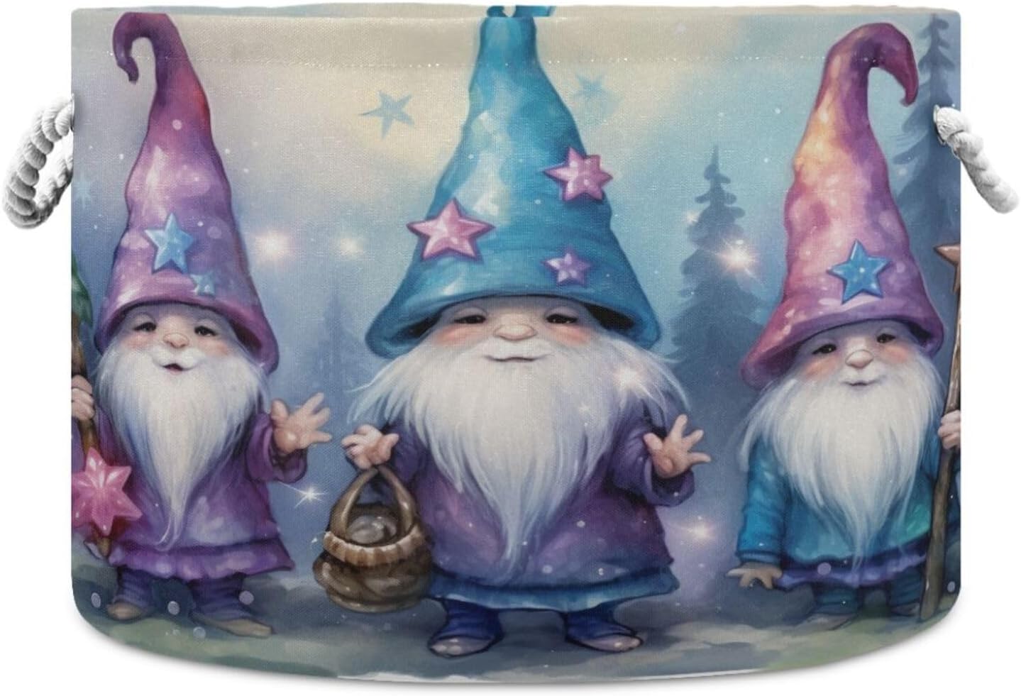 SPECIFICATIONS Material: High Quality Canvas, Cotton Handle. Shape: Round. Size: 20 x 14 Inch. Weight: 500g Printing Design: External Peripheral Printing Package: Set of 1 Cotton Rope Basket. ATTENTION: Machine wash is not allowed, hand wash is recommended. CONVENIENT DESIGN The Storage Basket with the reinforced cotton rope handle makes carry more easier and comfortable. It can be compressed and folded for storage when not in use. And it has a large bottom, moderate height, good stability, You can put it wherever you need it for easy access. MULTI-PURPOSE Suitable for a variety of scenarios, such as bedrooms, children's rooms, closets, bathrooms, living rooms, even be placed in the trunk of a car or anywhere in the house. Great for cosmetics, books ,toys, keepsakes,album, underwear, baby products and anything else you want. Our storage basket can help you organize your space in a neat way. If you have any questions please feel free to contact us, we will solve for you!