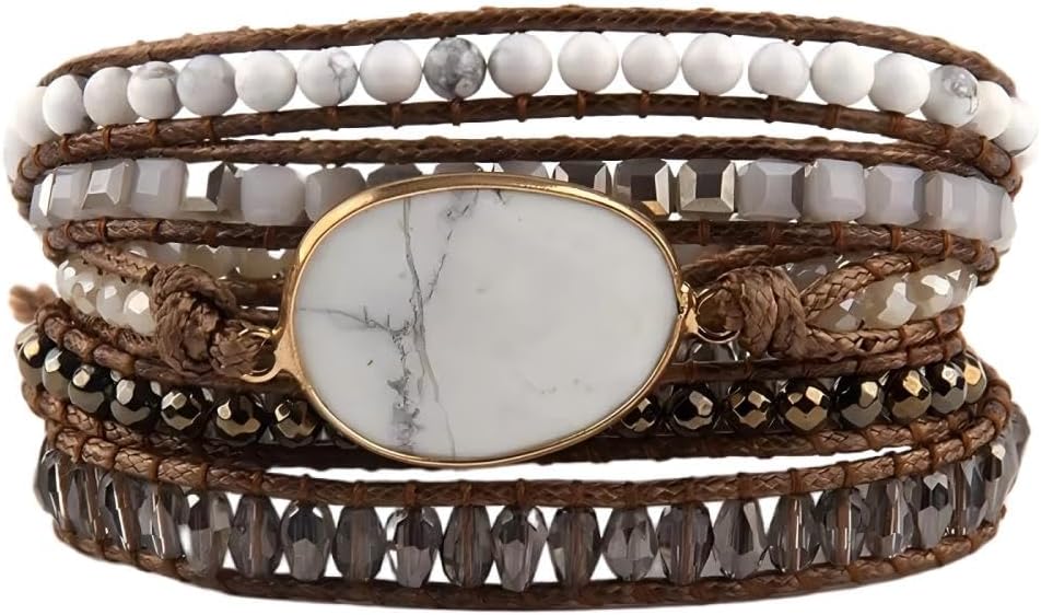 Material:Natural druzy ,Crystal,Turquoises,Topaz Pendant,Green Opal,Purple Jasper,White Opal,Lapis,Labradorite,Crystal beads,Alloy beads,Wax rope,stainless steel clasp; Making Technics: Full Handmade,The natural stone leather bracelets are handworked by professional workers.All stone are handpick and knitted by hand. Unique:Each has natural color distribution,So each bracelet is similar as picture but high quality unique one. Product Quality: 100% New and Exquisite Quality, We are a professional jewelry factory, the quality is Top 1 in this area.